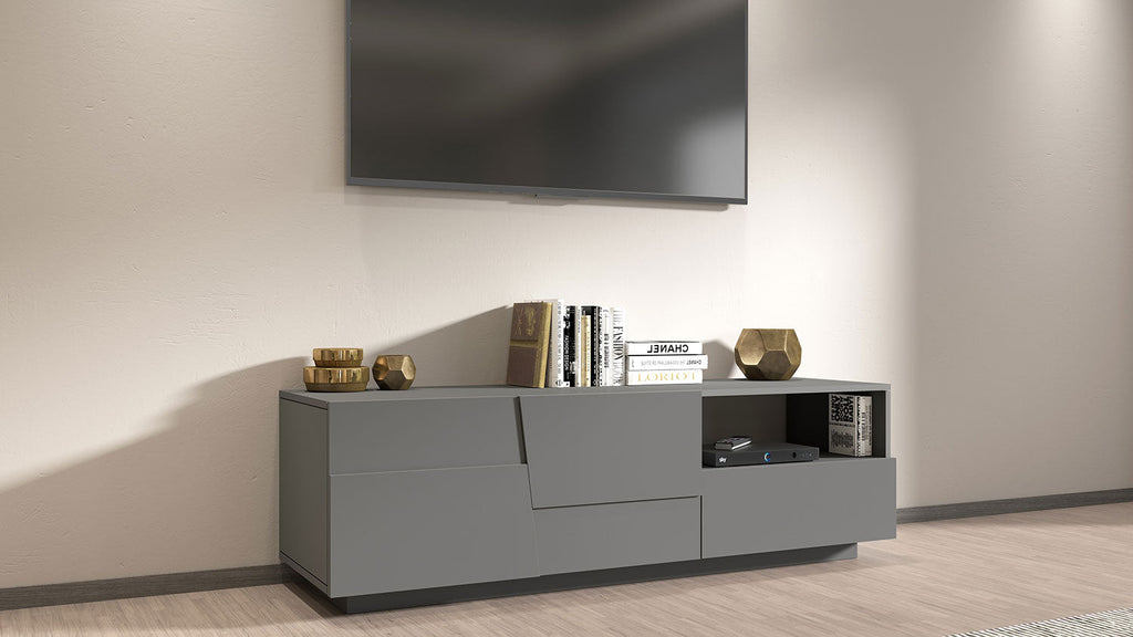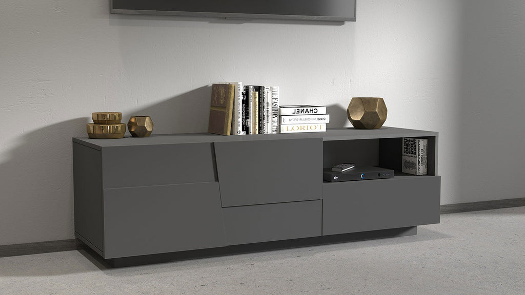 Mobile Tv 2 Anta 1 Cassetto e Ripiano a Giorno 150x45x46 cm Pongo 2A 1C Grigio Antracite Opaco