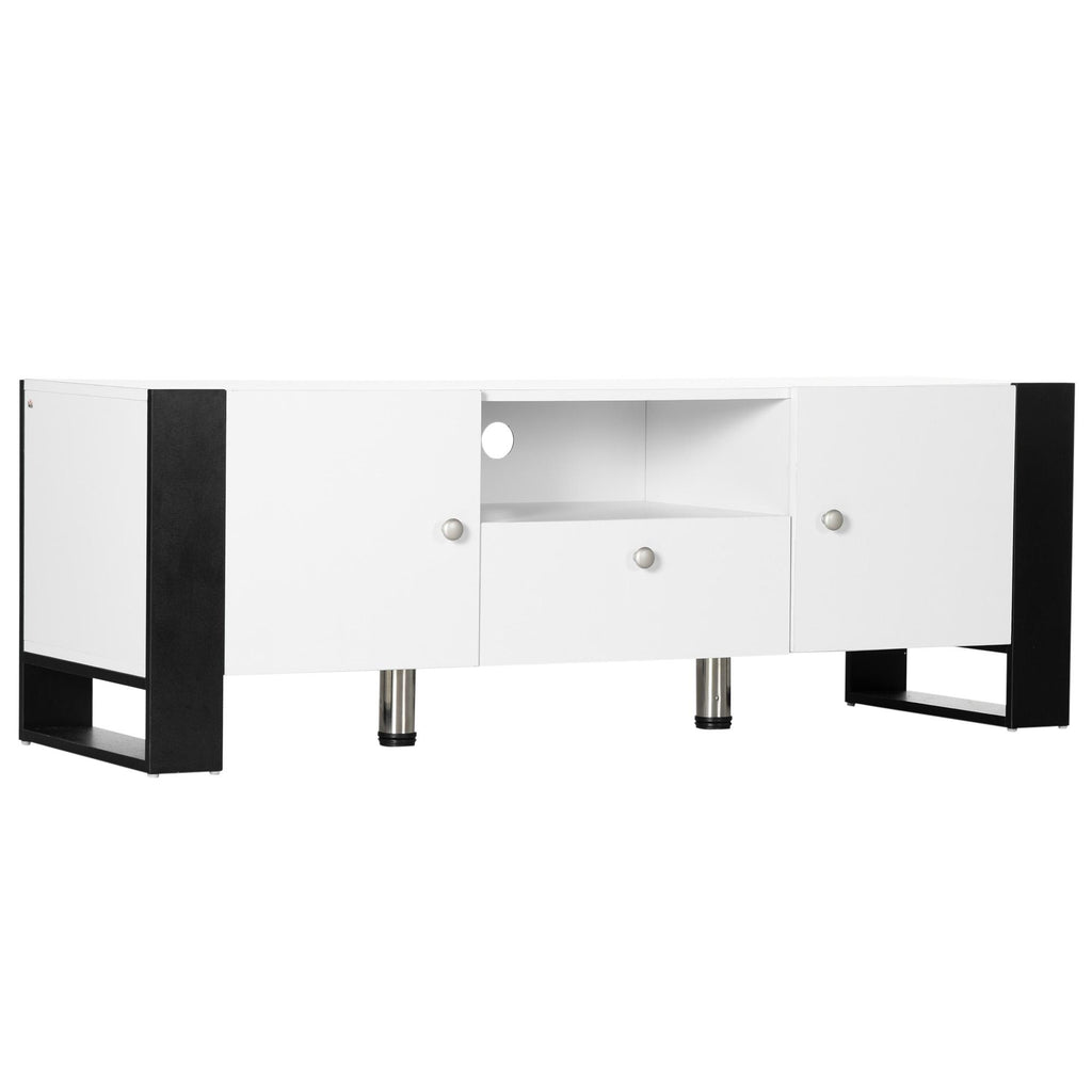 Mobile TV 2 Ante 1 Cassetto 1 Ripiano 140x43x48 cm per TV fino a 65" in Legno Truciolare Bianco e Nero