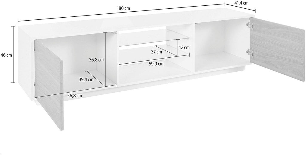 Mobile TV 2 Ante 180x41,4x46 cm Bloom Bianco Lucido e Noce