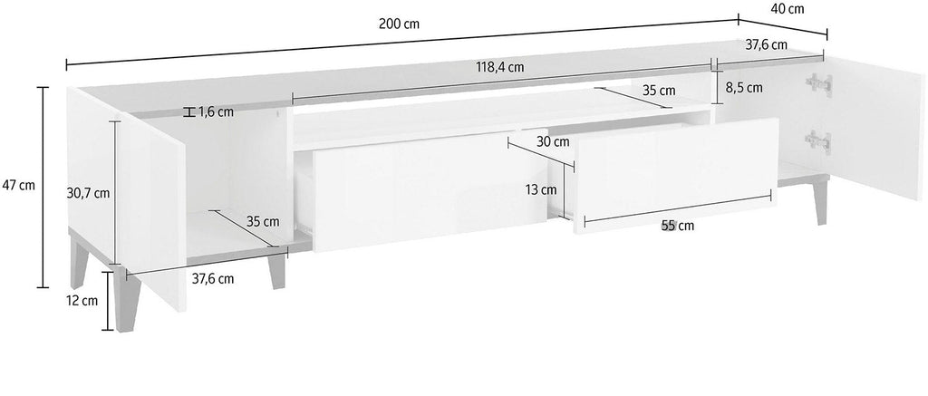 - Dimensioni del mobile montato: 200 x 40 x 47 (LxPxA)
