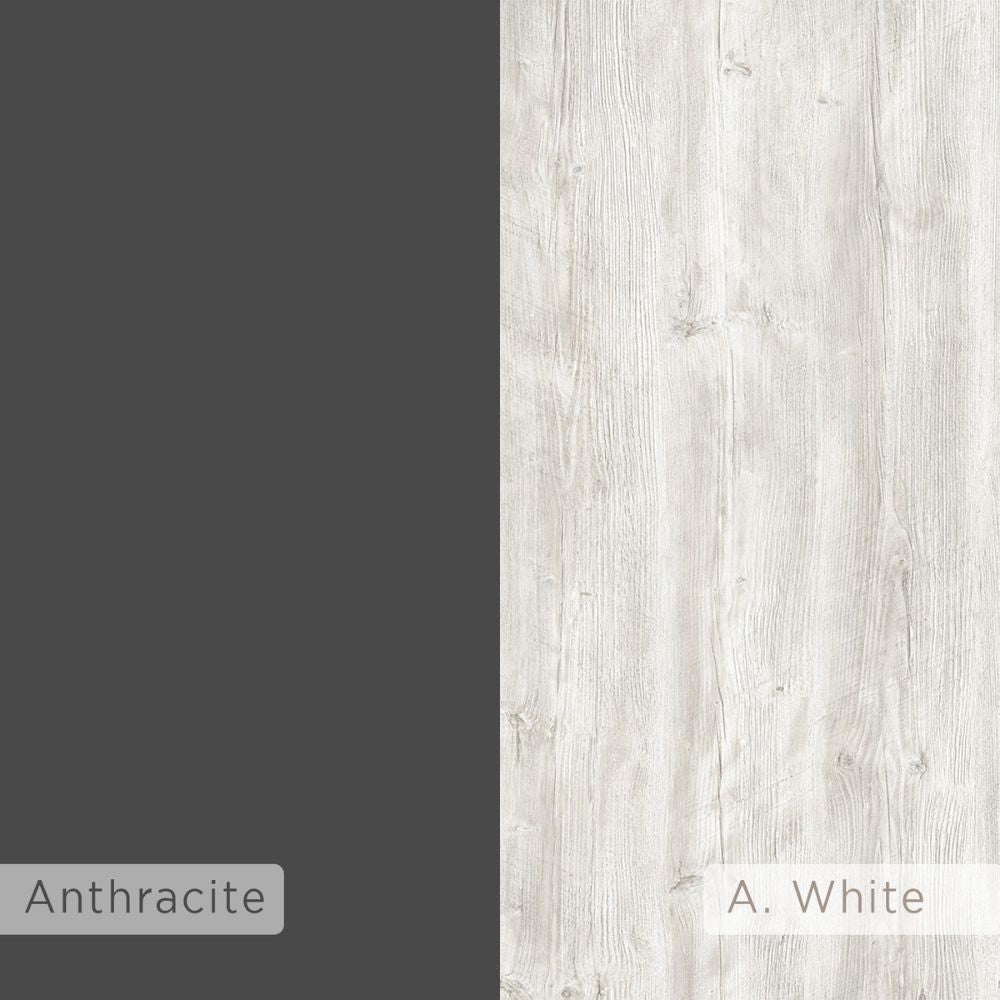 - Porta TV con struttura antracite e ante bianche vintage, dotato di mensole e armadietti chiusi
