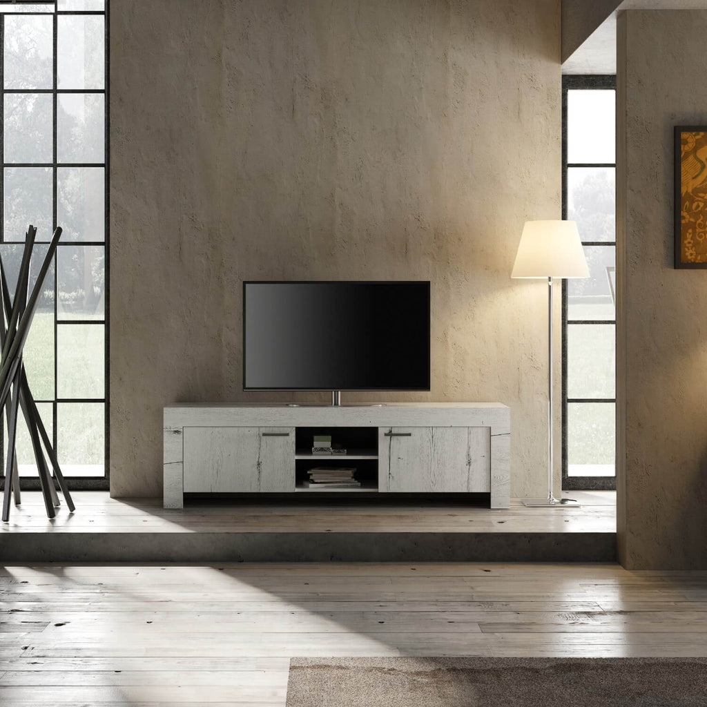 Mobile TV 2 Ante 3 Ripiani in Melaminico 180x43x53cm TFT Neve Rovere Neve