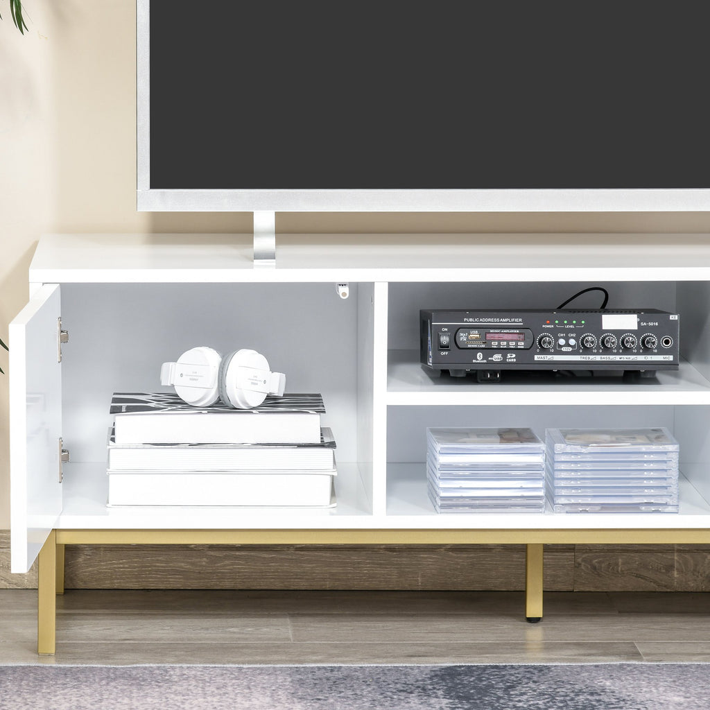 Mobile TV 2 Ante e Vano Centrale 120x40x44,6 cm in Legno Bianco e Oro