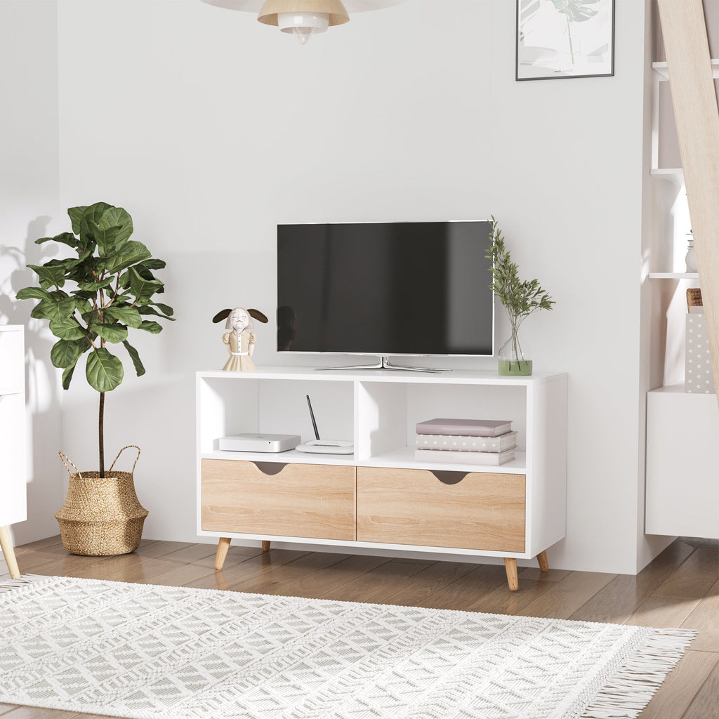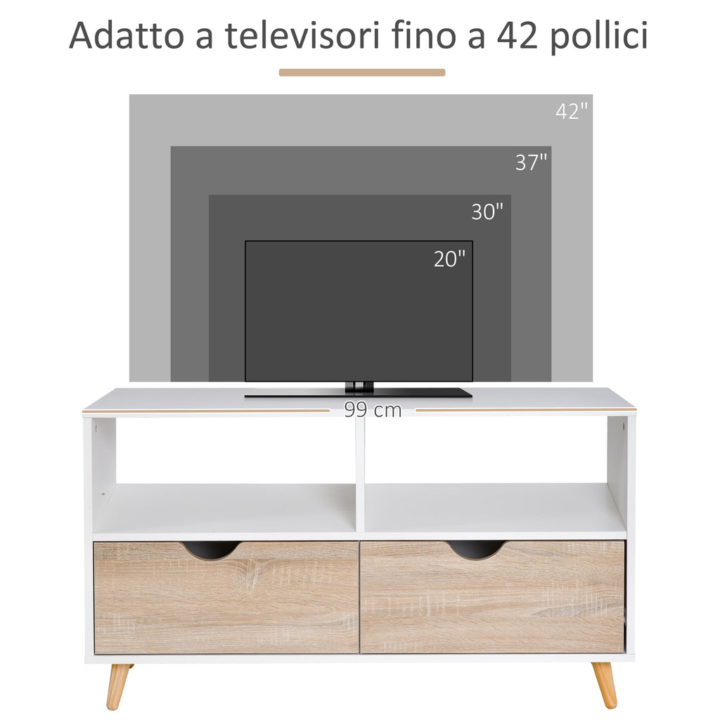 Mobile TV 2 Cassetti 2 Ripiani 99x39x58 cm in Legno Bianco