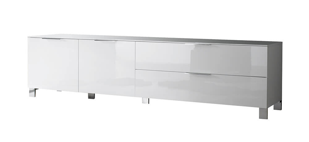 Mobile TV 2 Porte 2 Cassetti 53x210x45cm TFT Sola Bianco Lucido