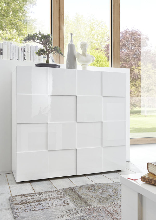 Mobile Alto Soggiorno 2 Porte in Melamina 121x42x111cm TFT Chequers Bianco