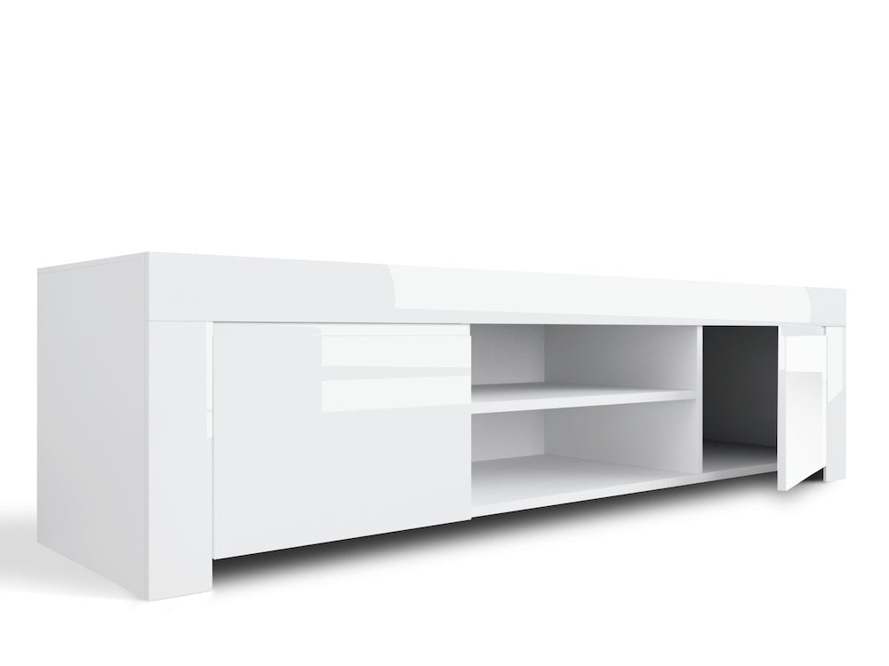 Mobile TV 2 Porte e 2 Ripiani Aperti 140x50x45cm TFT Amber Bianco Lucido