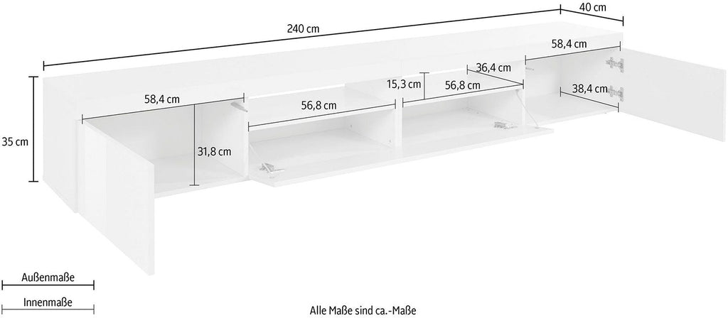 - Dimensioni mobile tv: 240x40x35 cm (LxPxA)