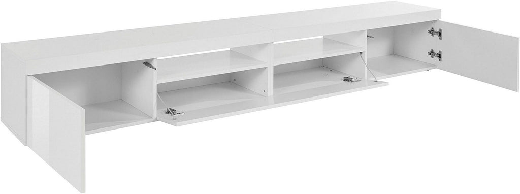 Mobile Tv 3 Ante e Ripiano a Giorno 240x40x35 cm Essential 2A 1R Bianco Lucido