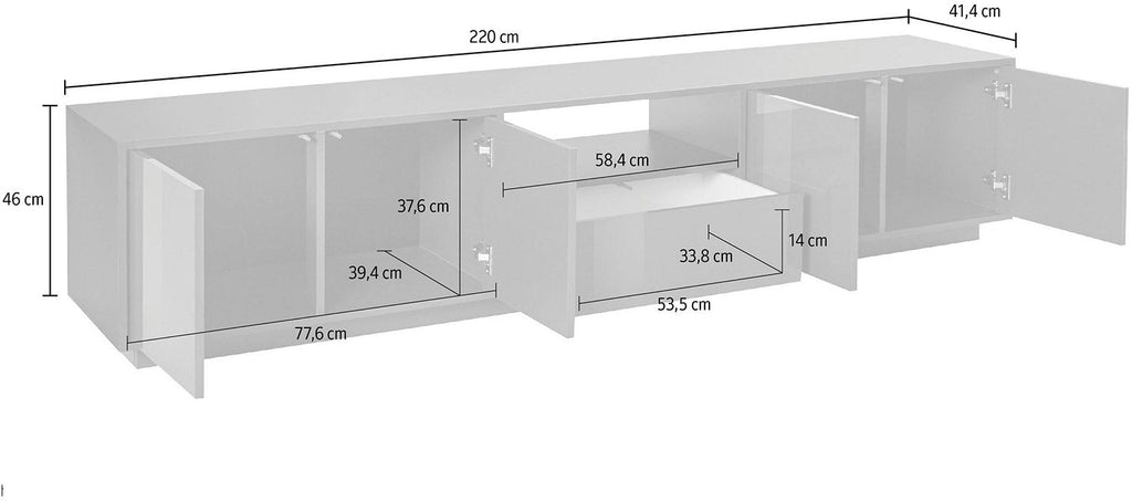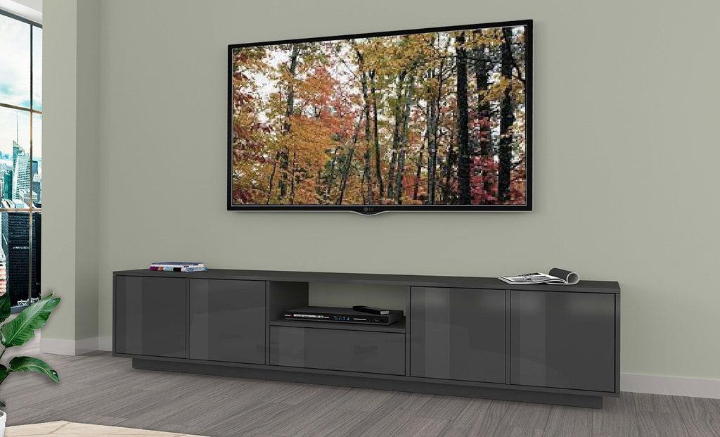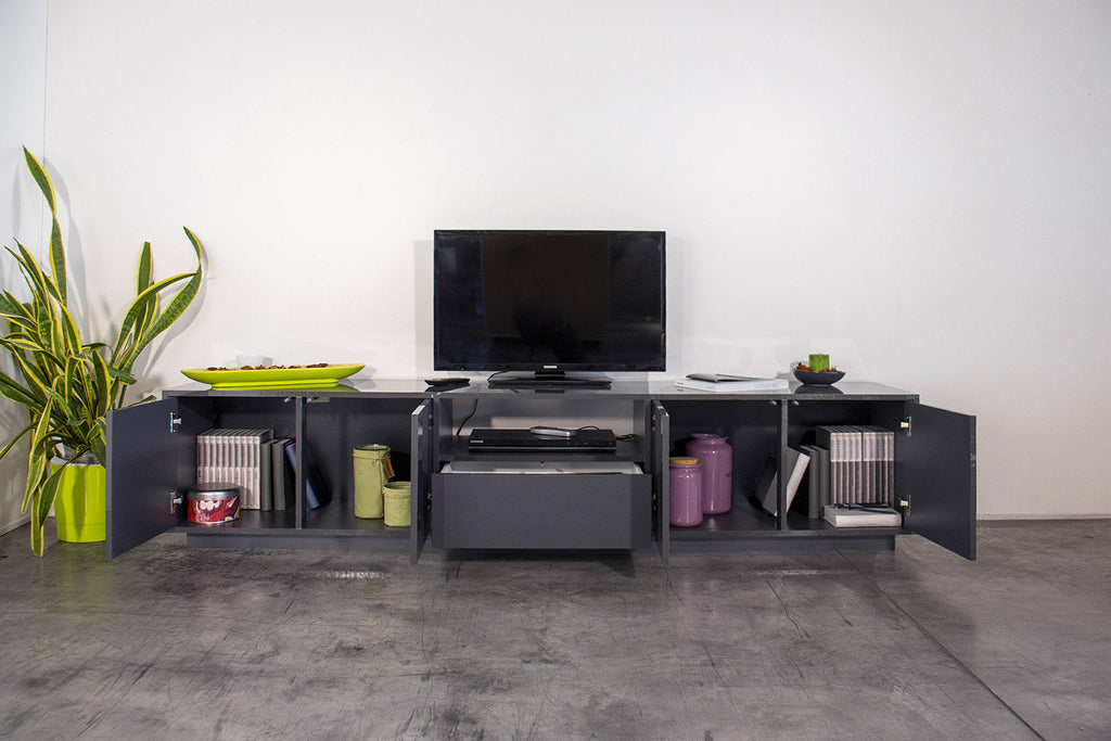 Mobile TV 4 Ante 1 Cassetto 220,1x41,5x46 cm Bloom Grigio Antracite Laccato Lucido