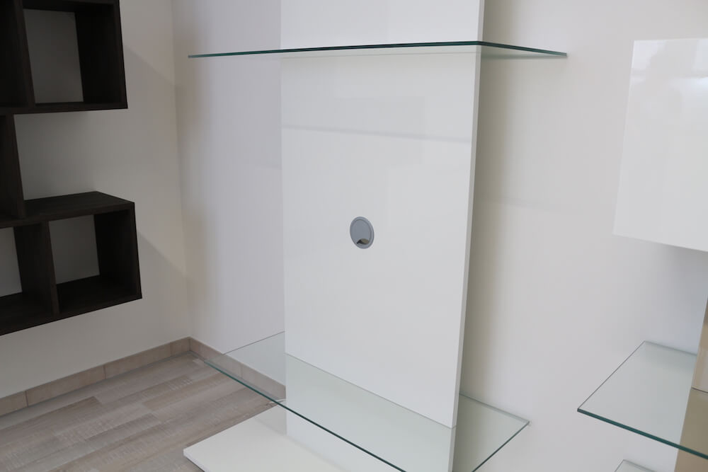 Mobile TV a Torre Con 2 Mensole in Vetro e Finitura Antigraffio TFT Serie PrimoCaratteristiche: