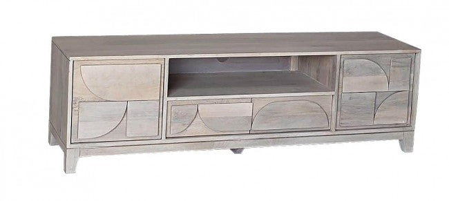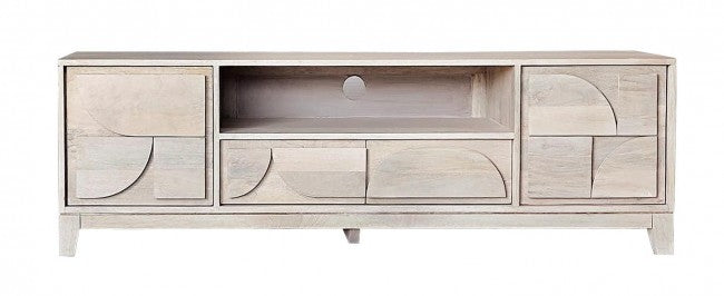 - Mobile TV in legno di mango con schienale e fondo cassetto in MDF per un design moderno