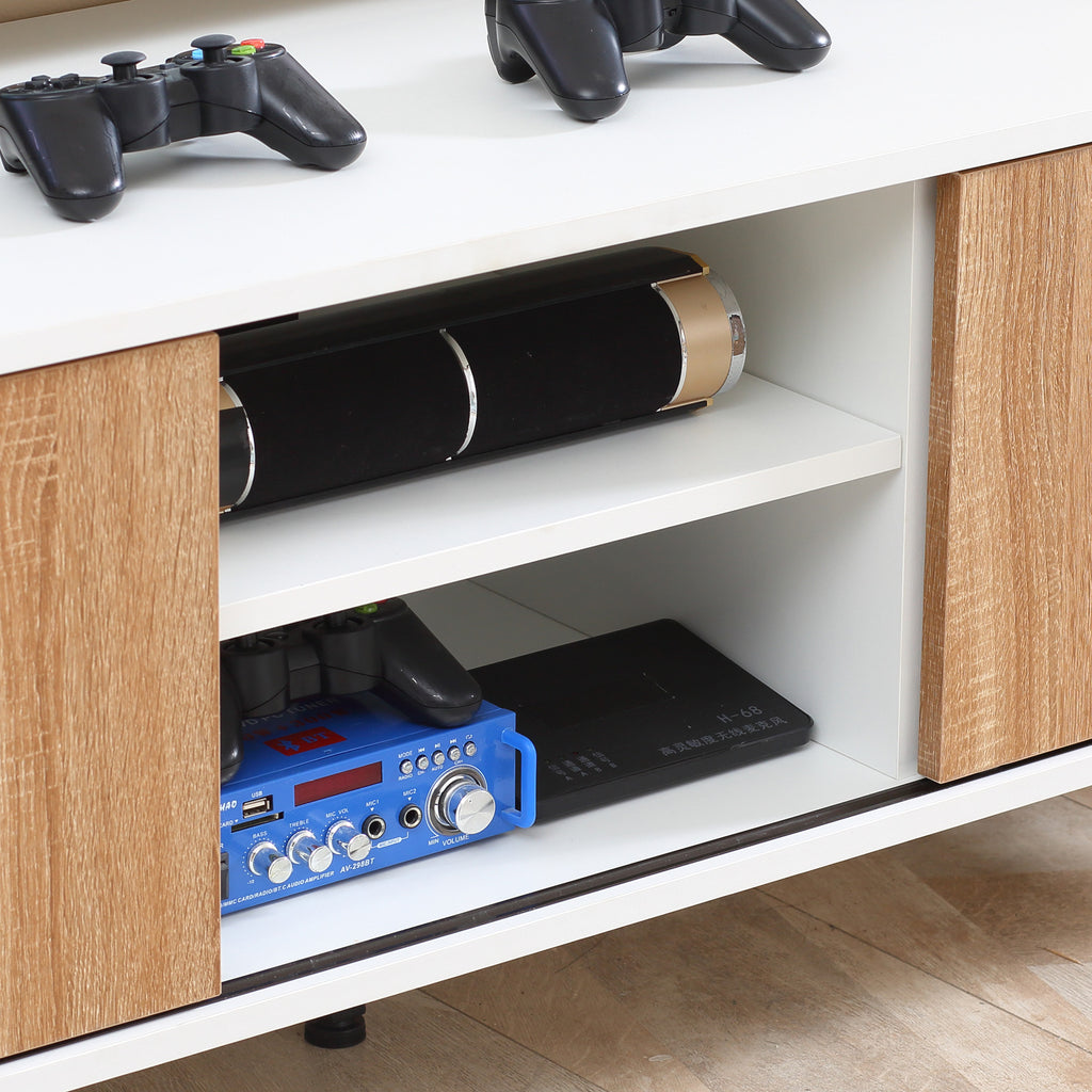 Mobile TV Fino a 50" 120x39,5x45 cm in Truciolato e Acciaio Bianco e Colore Legno