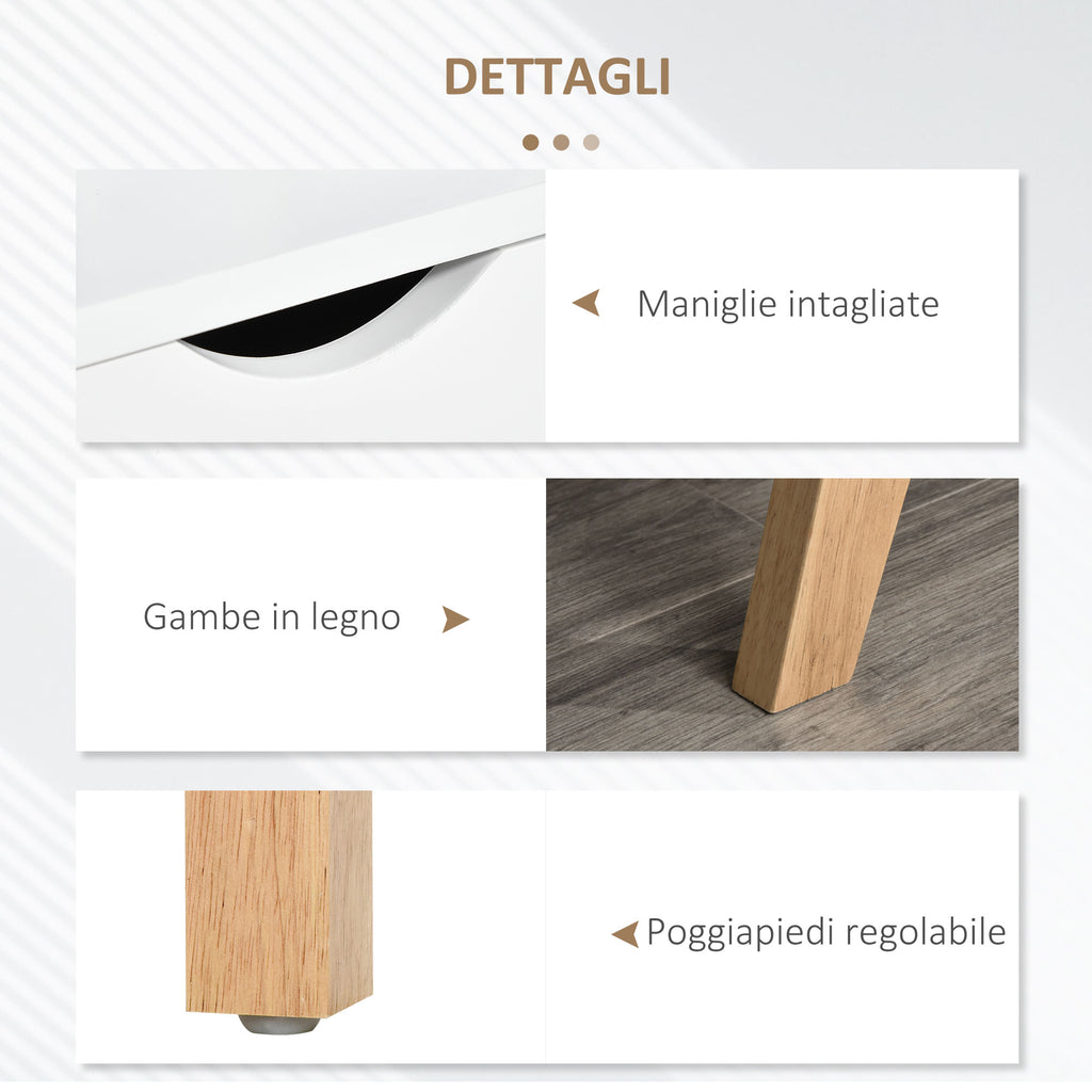 - GAMBE SOLIDE: Le gambe in legno garantiscono equilibrio e stabilità al mobile TV in qualunque momento. La finitura naturale completa il colore bianco del mobile