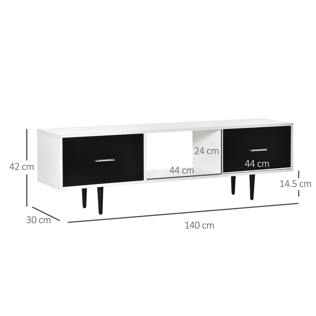 Mobile TV in Legno Truciolato e Metallo 140x30x42 cm Bianco e Nero