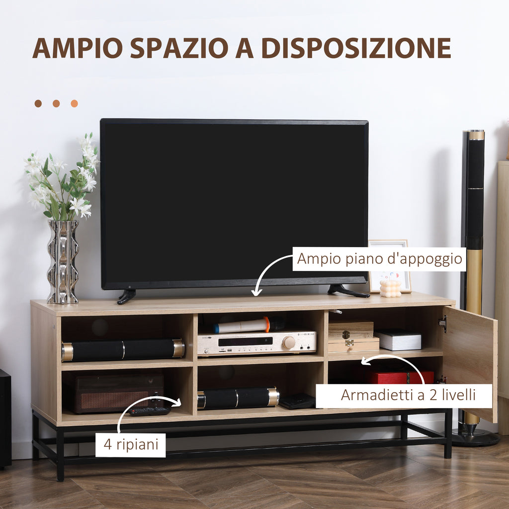Mobile TV max 60" con 4 Ripiani e Armadietto a 2 Livelli 140x40x55,3 cm in MDF e Acciaio