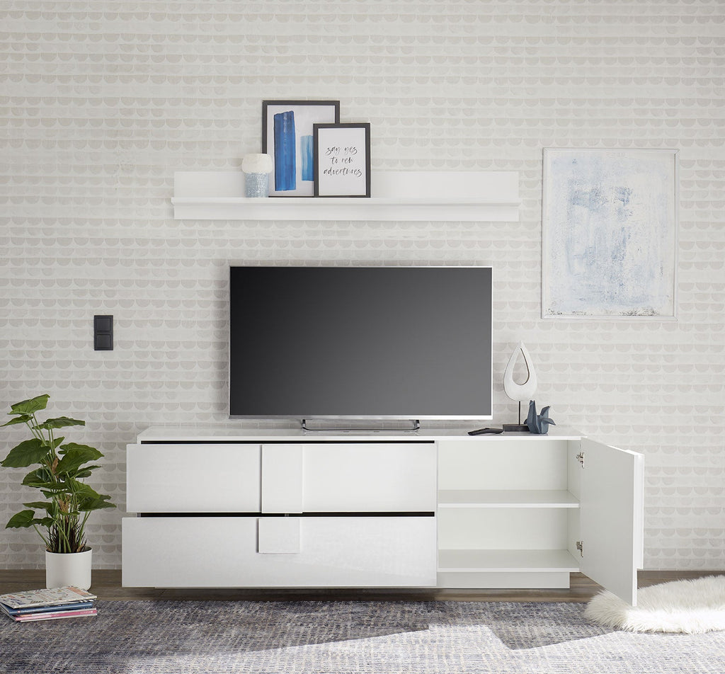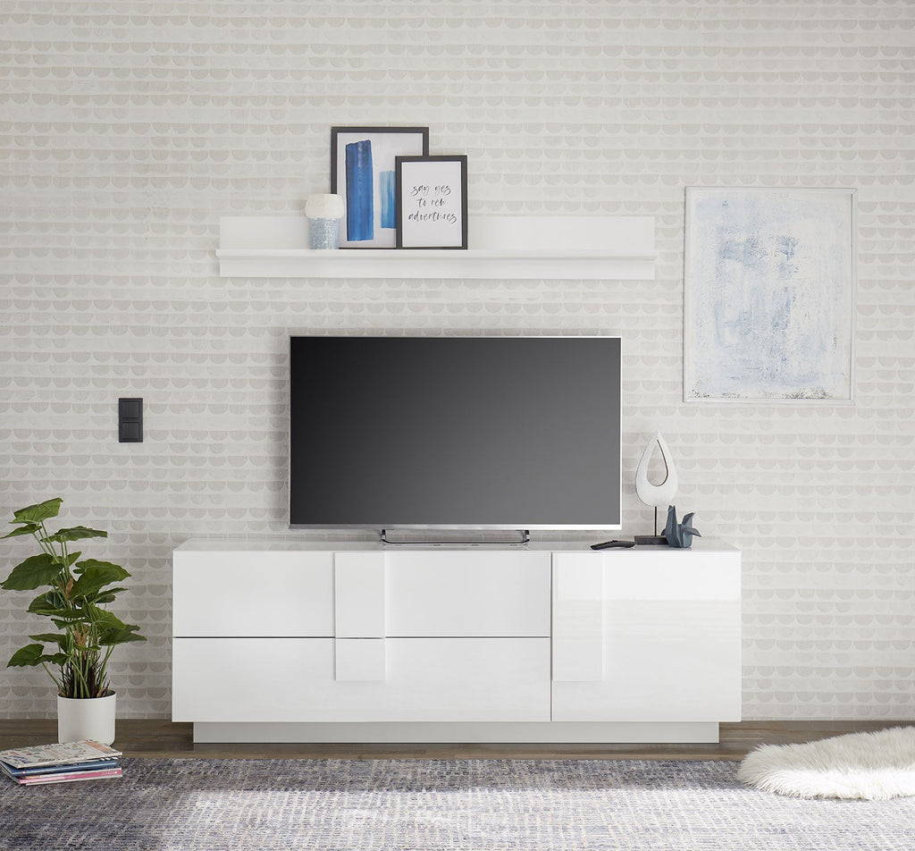 Mobile TV Moderno 1 Anta 2 Cassetti Jupiter 182x44x63 cm Bianco laccato lucido