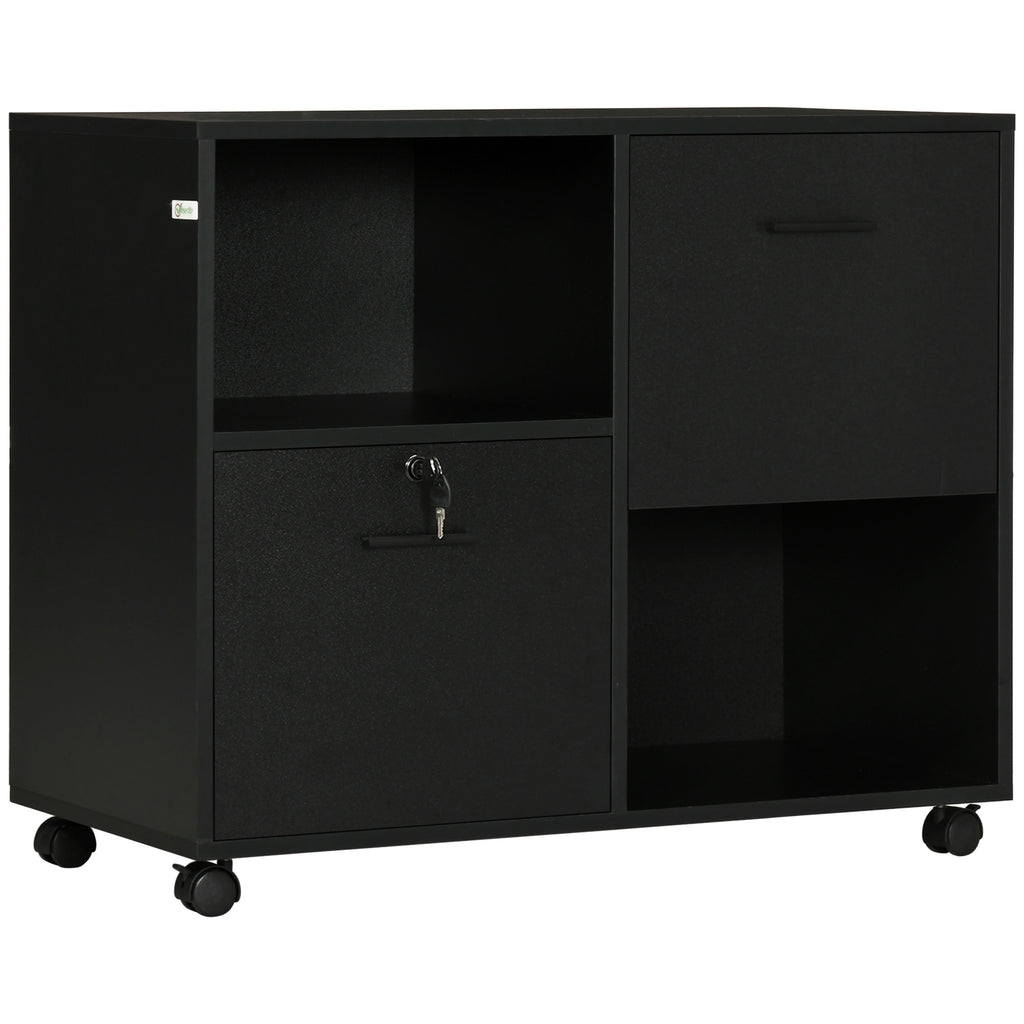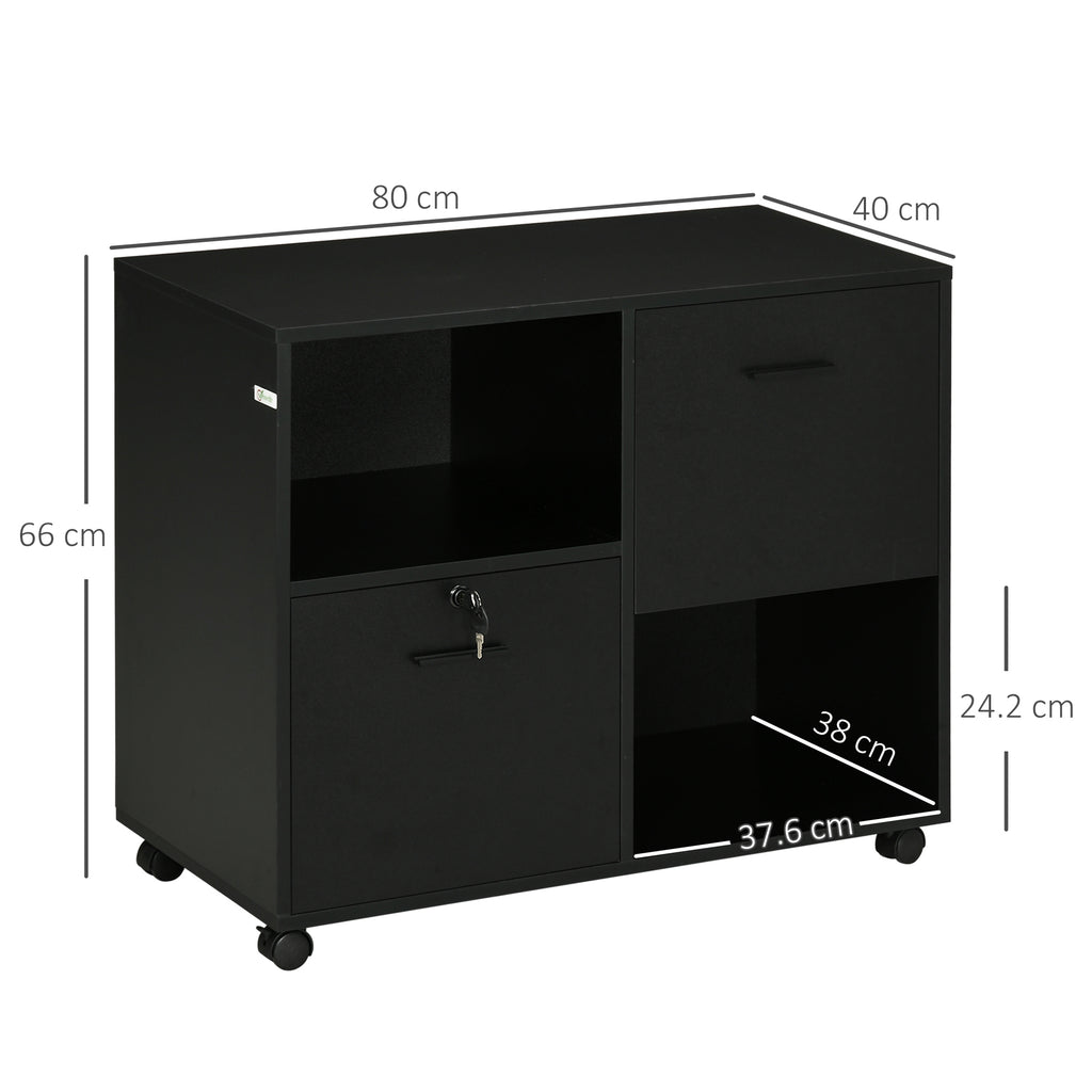 Mobile Ufficio 2 Cassetti 2 Ripiani 80x40x66 cm in Truciolato Nero