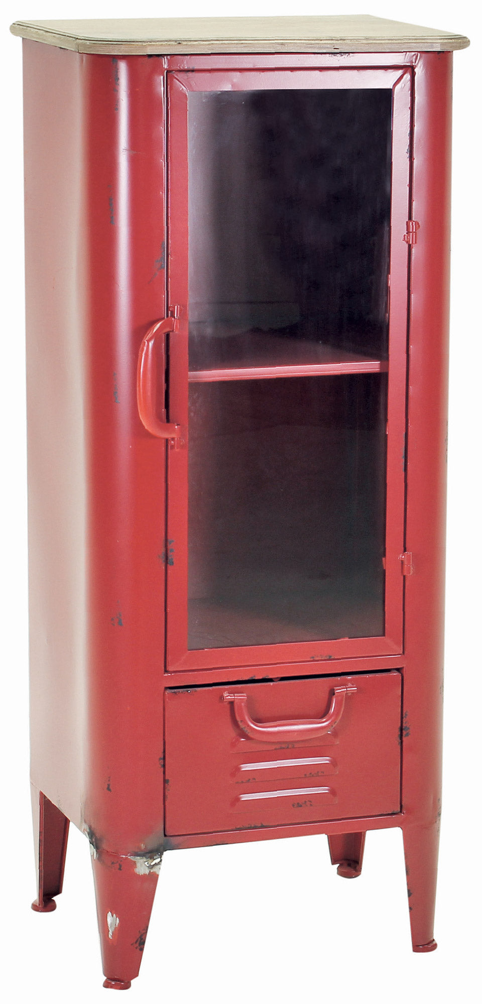 Mobile Vetrina 1 Anta 1 Cassetto in Metallo Edimburgo Rosso