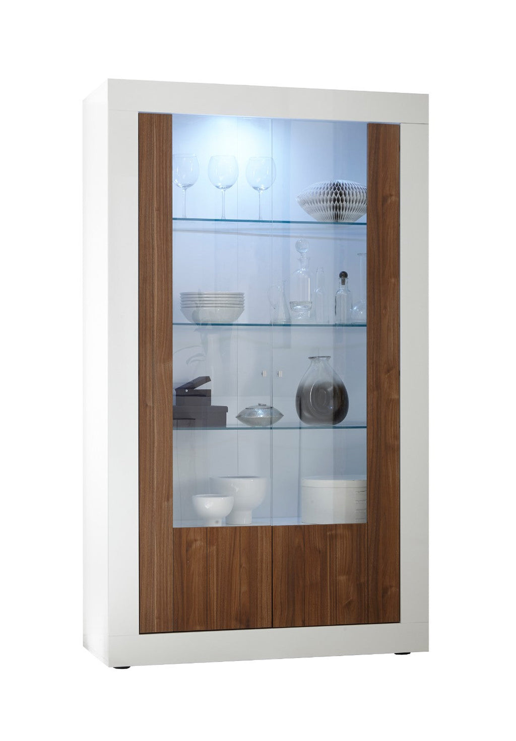 Mobile Vetrina 2 Ante 110x42x191 cm in Legno TFT Lipari Bianco e Noce