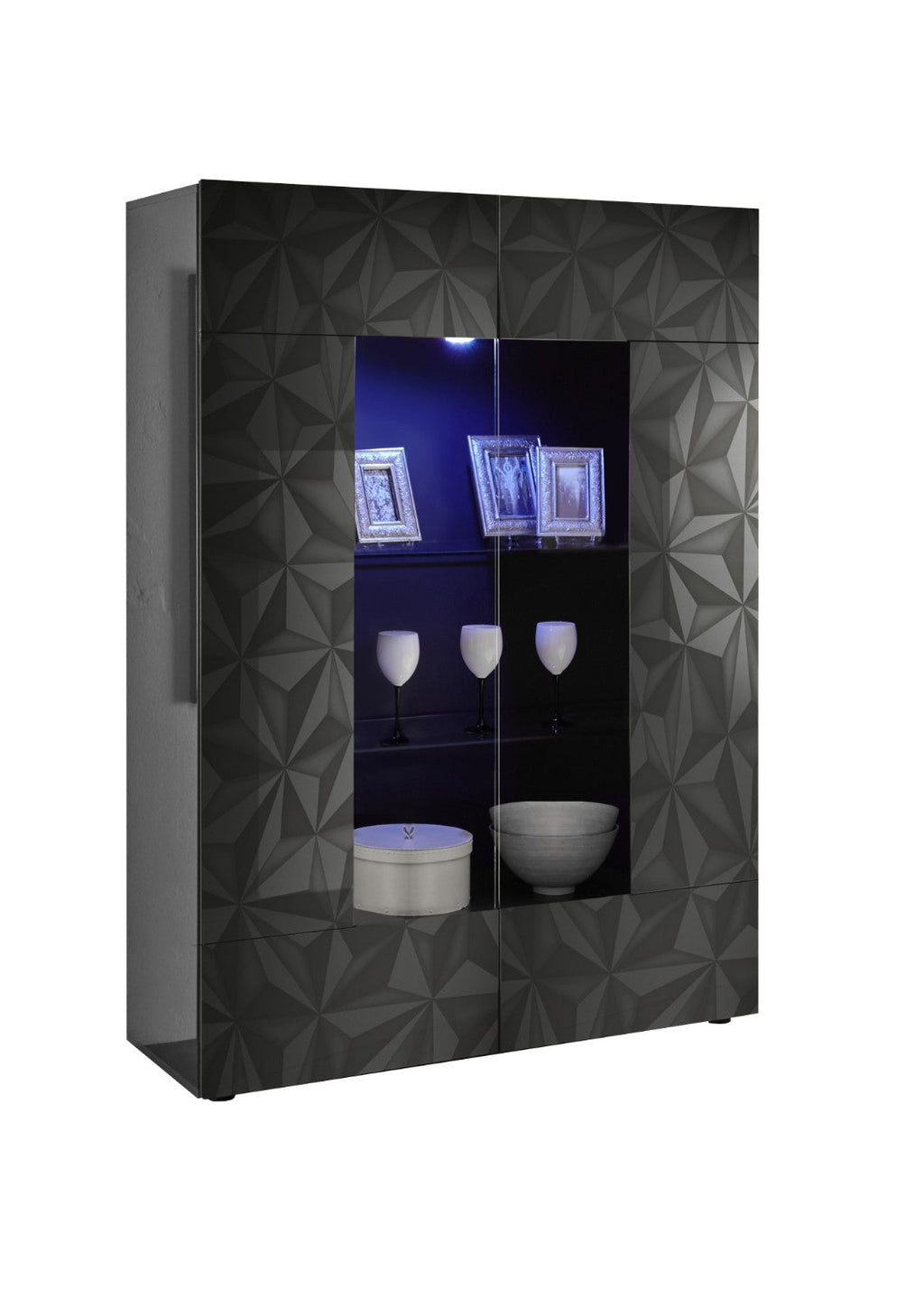 Mobile Vetrina 2 Ante 120x42x166 cm in Legno TFT Praga Nero Lucido