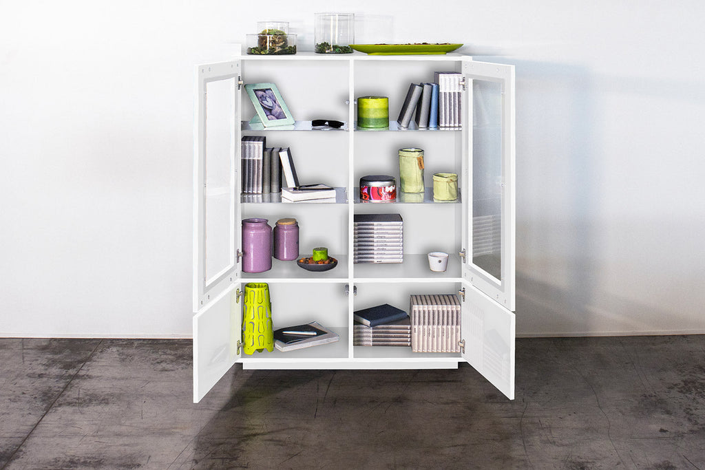 Grazie alle sue dimensioni e al design distintivo, la vetrina BLOOM è un complemento d’arredo capace di distinguer si all’interno di un ambiente. La struttura è composta da 2 ante battenti intelaiate, con apertura push to open con 4 ripiani in vetro all'interno per riporre tutto quello che desideri mette in esposizione. Per i frontali e la struttura generale è stato utilizzato il melaminico bianco e antracite. La vetrina BLOOM è un complemento che, grazie alle sue dimensioni e al suo design unico, è in grado di risultare perfetta inserita in qual sia si stile di arredo. Spedita con un semplice kit di montaggio così che potrai goderti imm ediatamente la tua vetrina BLOOM.