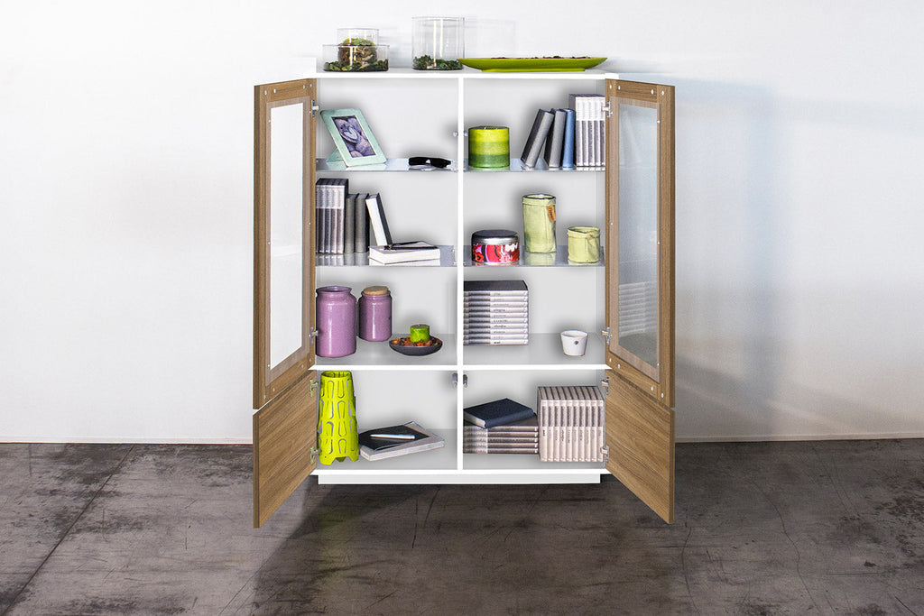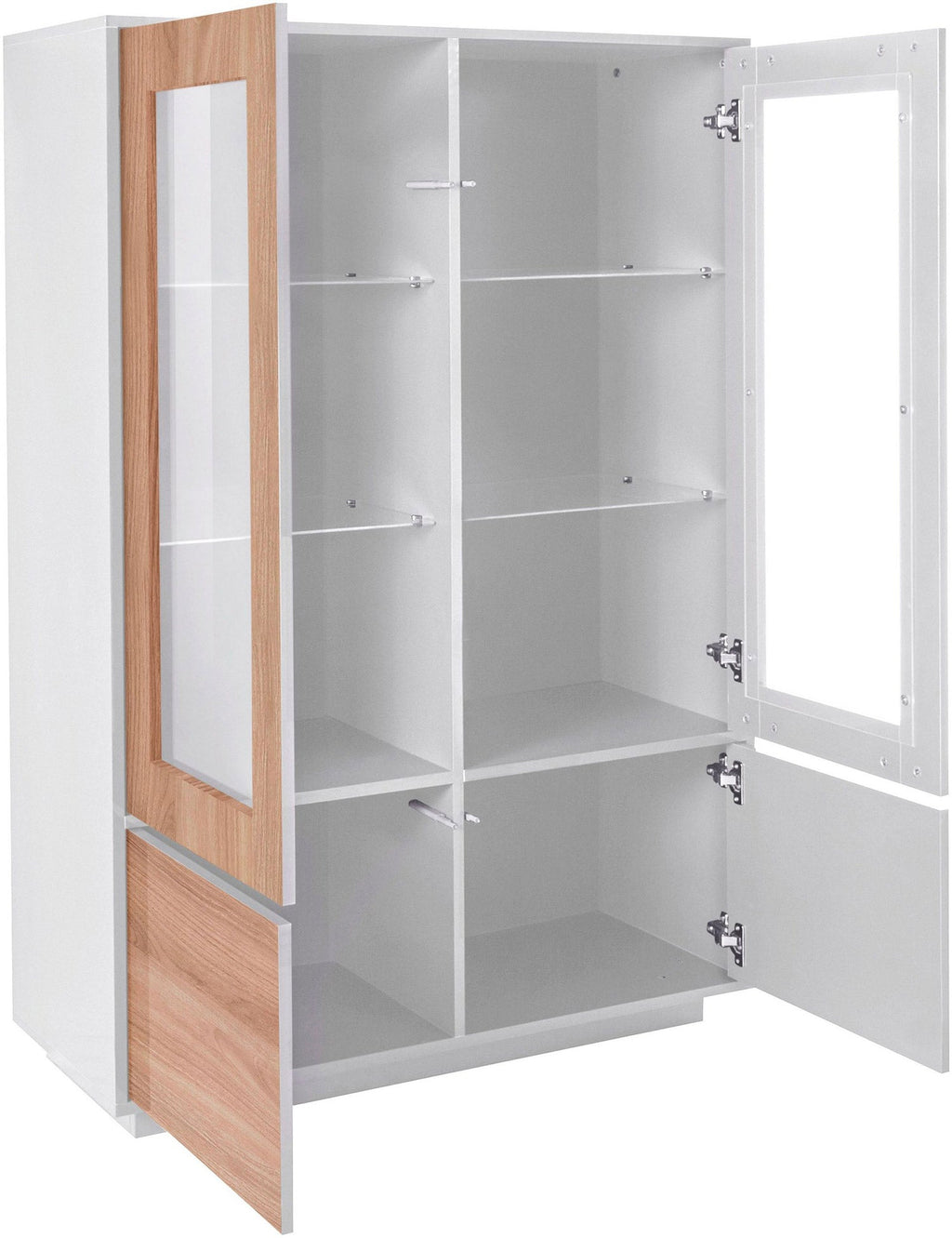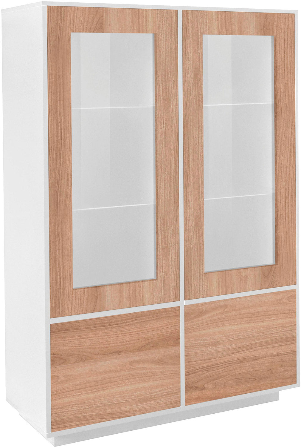 Mobile Vetrina 4 Ante 100,1x41,4x146 cm Bloom Bianco Lucido e Noce
