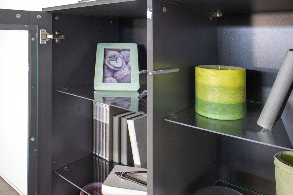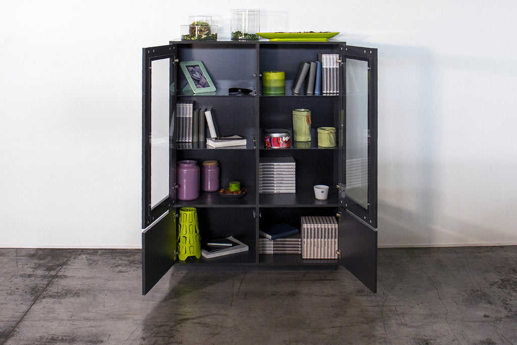Grazie alle sue dimensioni e al design distintivo, la vetrina BLOOM è un complemento d’arredo capace di distinguer si all’interno di un ambiente. La struttura è composta da 2 ante battenti intelaiate, con apertura push to open con 4 ripiani in vetro all'interno per riporre tutto quello che desideri mette in esposizione. Per i frontali e la struttura generale è stato utilizzato il melaminico bianco e antracite. La vetrina BLOOM è un complemento che, grazie alle sue dimensioni e al suo design unico, è in grado di risultare perfetta inserita in qual sia si stile di arredo. Spedita con un semplice kit di montaggio così che potrai goderti imm ediatamente la tua vetrina BLOOM.