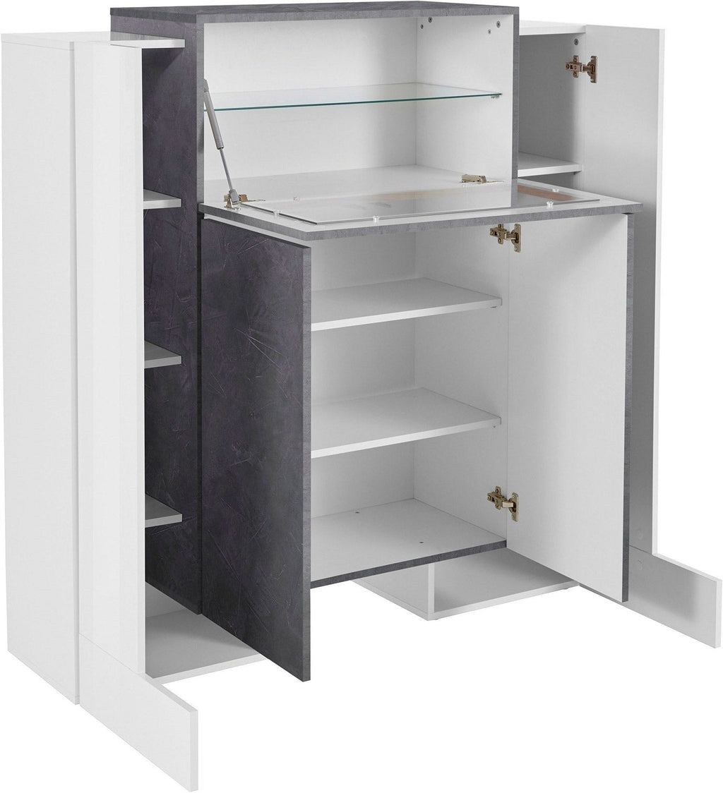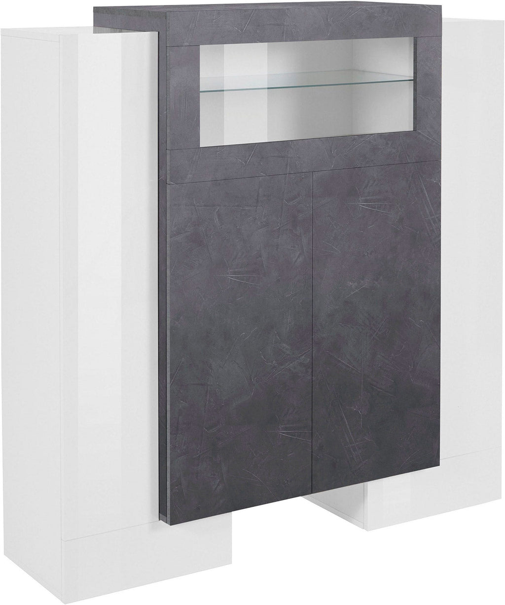 Mobile Vetrina 5 Ante 130x45x135 cm Pillon Bianco Lucido e Ardesia