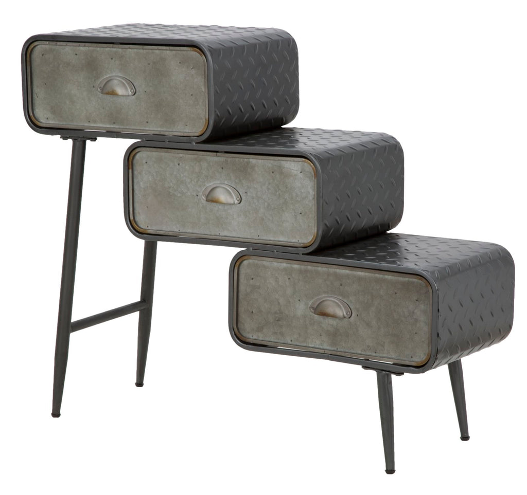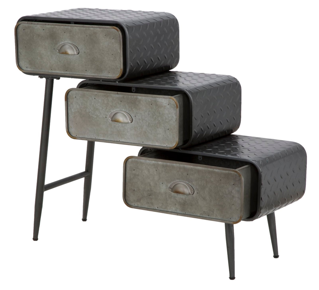 Mobiletto in metallo con 3 cassetti. Pratiche e stilose cassettiere in stile industriale rude e minimal.
