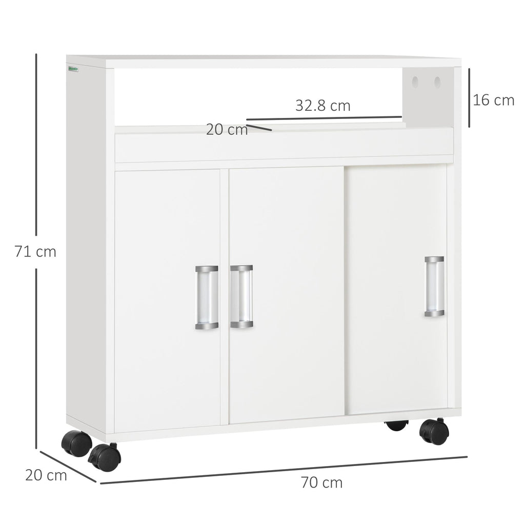 Mobiletto Bagno con Porte Scorrevoli 70x20x71 cm Ripiano Regolabile con Ruote Bianco