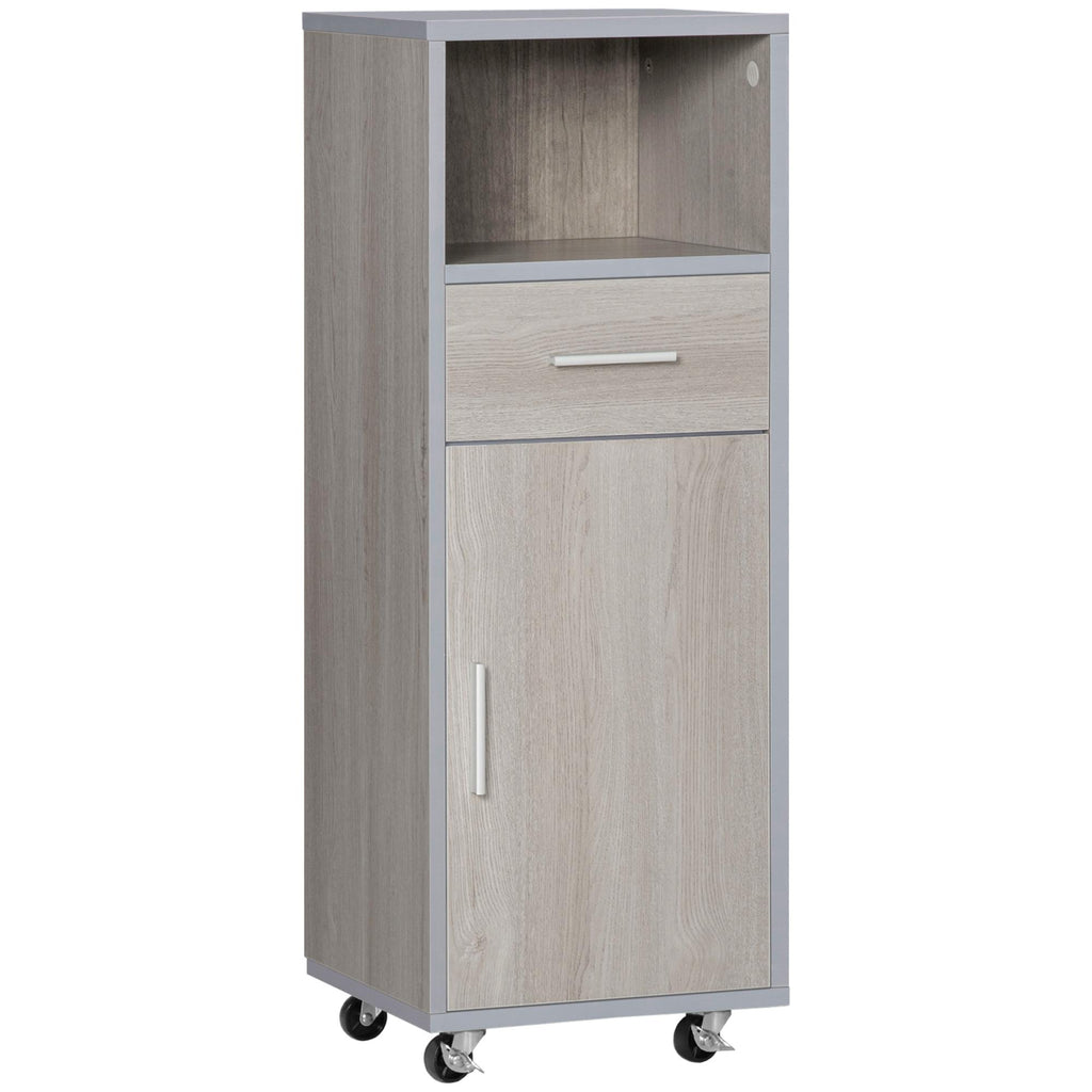 Mobiletto Bagno con Ruote 30x32x87 cm in MDF Grigio e Legno