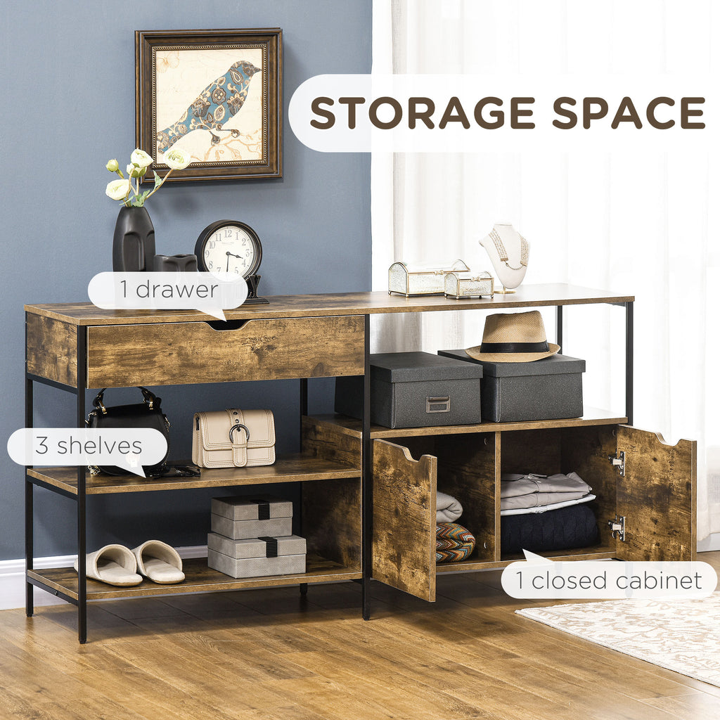 Mobiletto Basso 147x40x77 cm in Acciaio e Legno Marrone