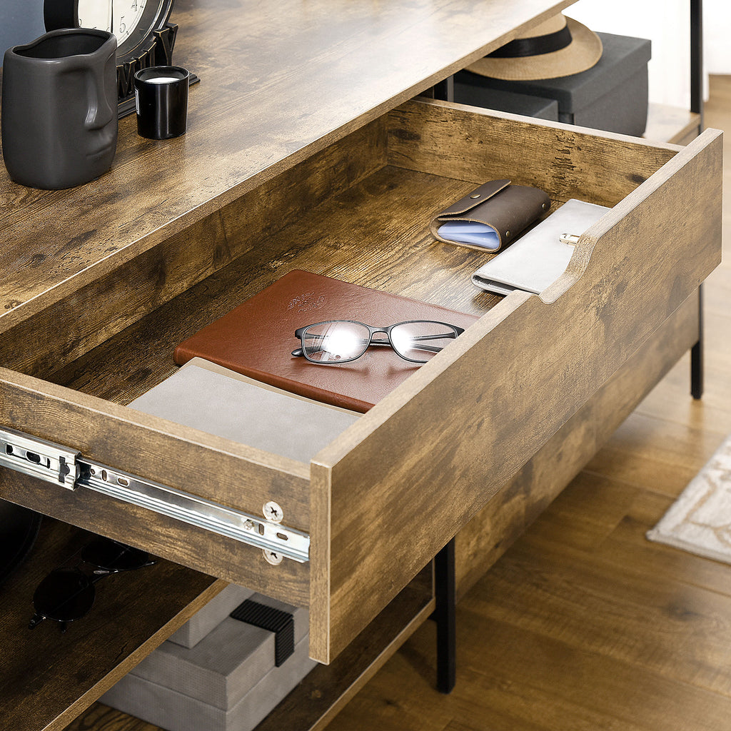 - DIMENSIONI: Dimensioni generali: 147L x 40P x 77A cm. Capacità di peso: 100kg (totale), 30kg (piano superiore), 10kg (cassetto), 10kg (ripiano). Montaggio richiesto