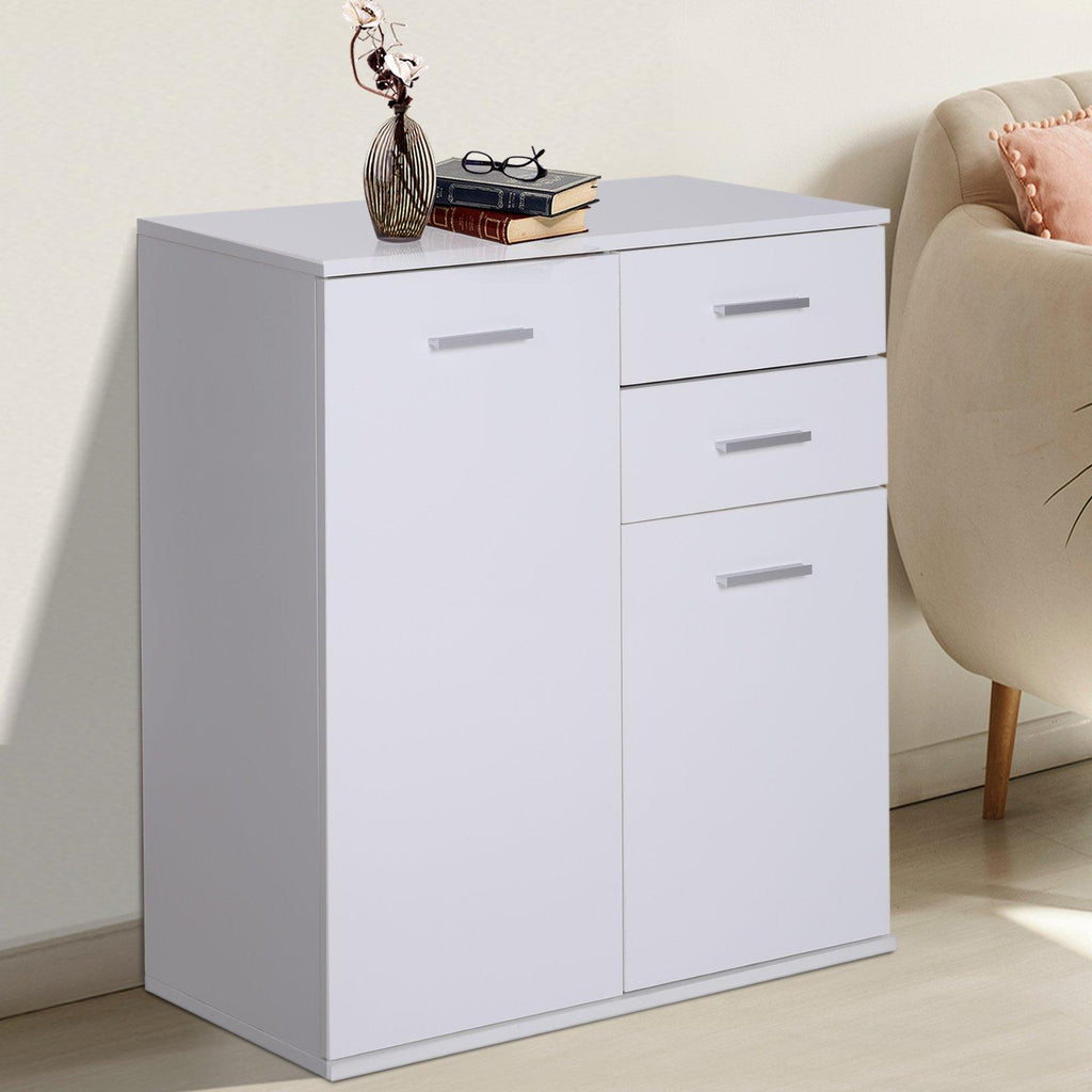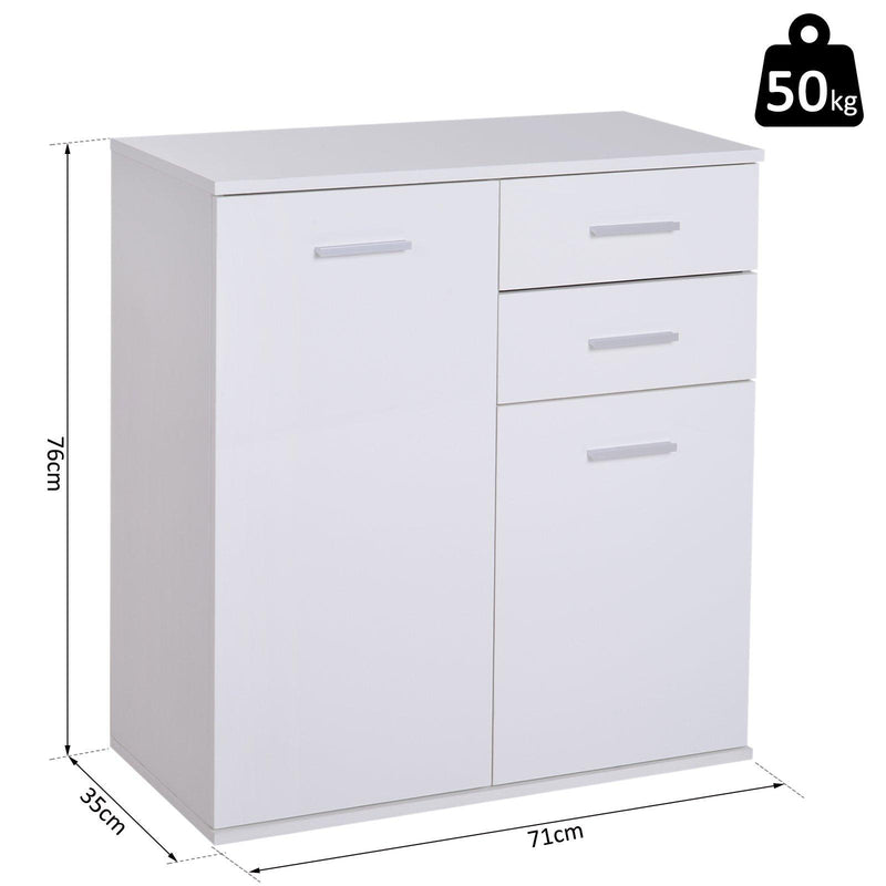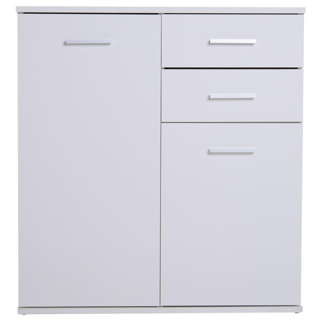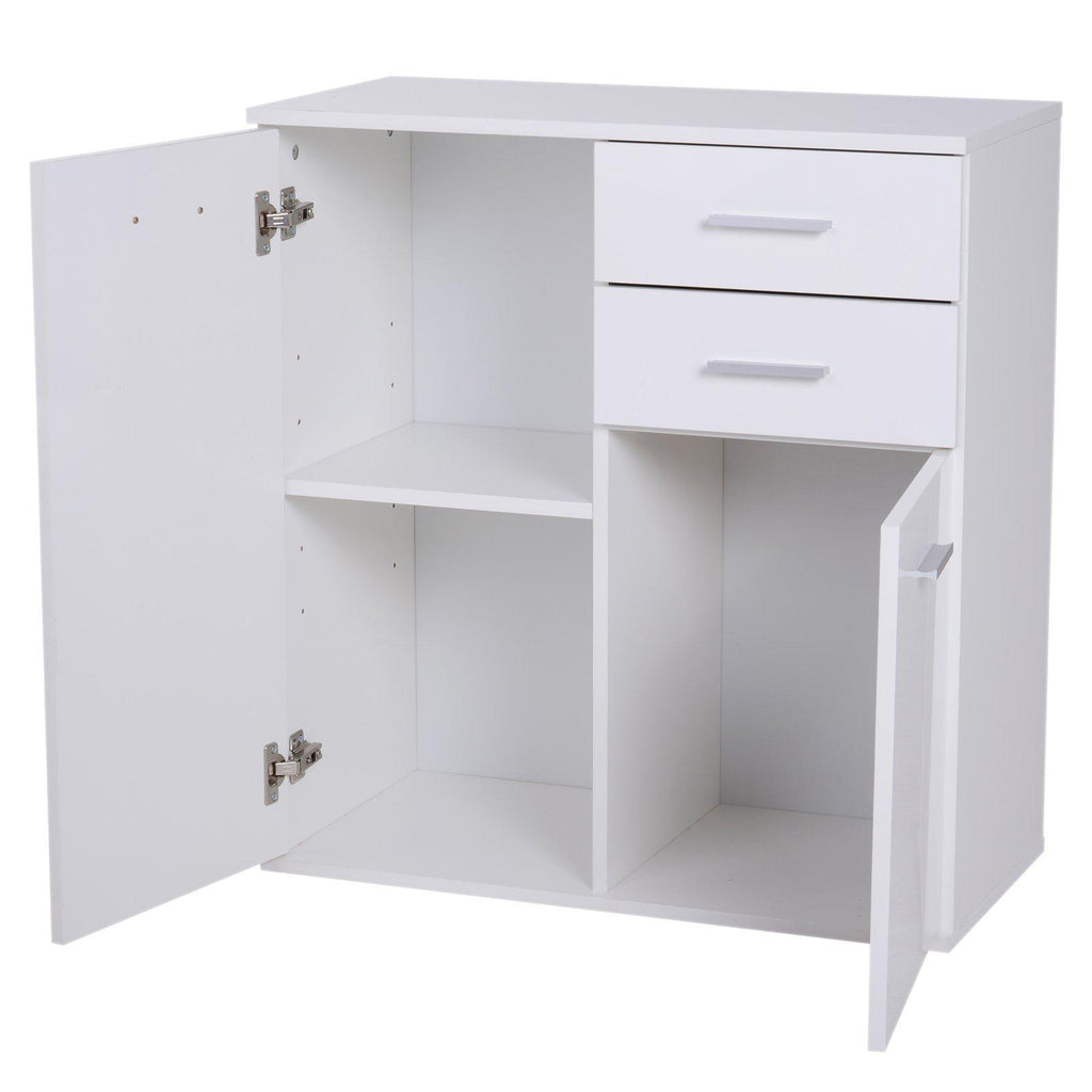 Mobiletto Cassettiera 2 Cassetti 2 Ante con Ripiano Regolabile in Legno Bianco 71x35x76 cm