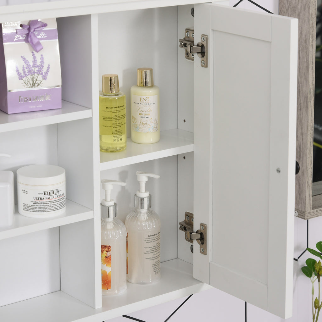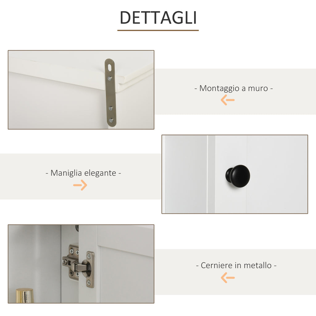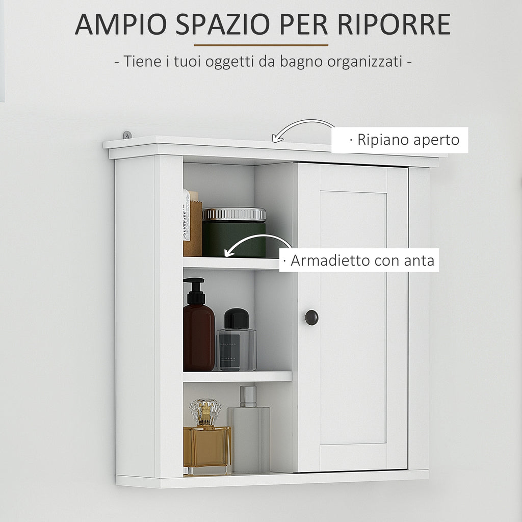 Mobiletto da Parete Salvaspazio 4 Ripiani Anta in Legno Bianco 53x14.5x50.5 cm