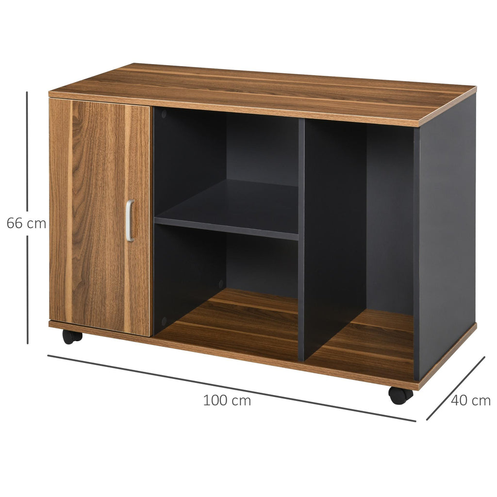 Il mobiletto da ufficio firmato ha uno stile moderno perfetto per ogni ambiente. È dotato di ampi vani aperti e di un armadietto, per offrirti un vasto spazio in cui riporre i documenti e il materiale da ufficio. Grazie alla solida struttura puoi usarlo anche come mobiletto per stampante e per altri piccoli macchinari da ufficio. Il mobile ha 5 ruote per essere spostato facilmente dove preferisci. Durevole e facile da pulire, questo mobiletto multiuso è immancabile in ufficio e a casa.