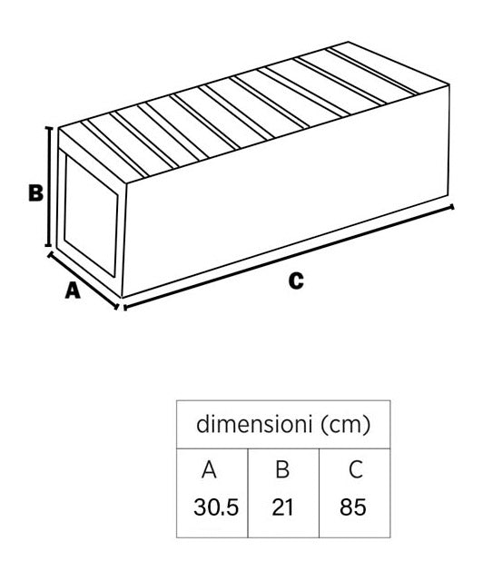 - Dimensione (LxPxA): 85x21x30,5 cm