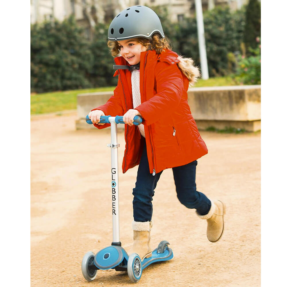 Monopattino a 3 ruote a Doppia Iniezione Primo Plus della Globber è adatto per ogni bambino dai 3 ai 6 anni con altezza massima di 95 cm e peso massimo di 50 Kg.
