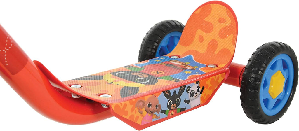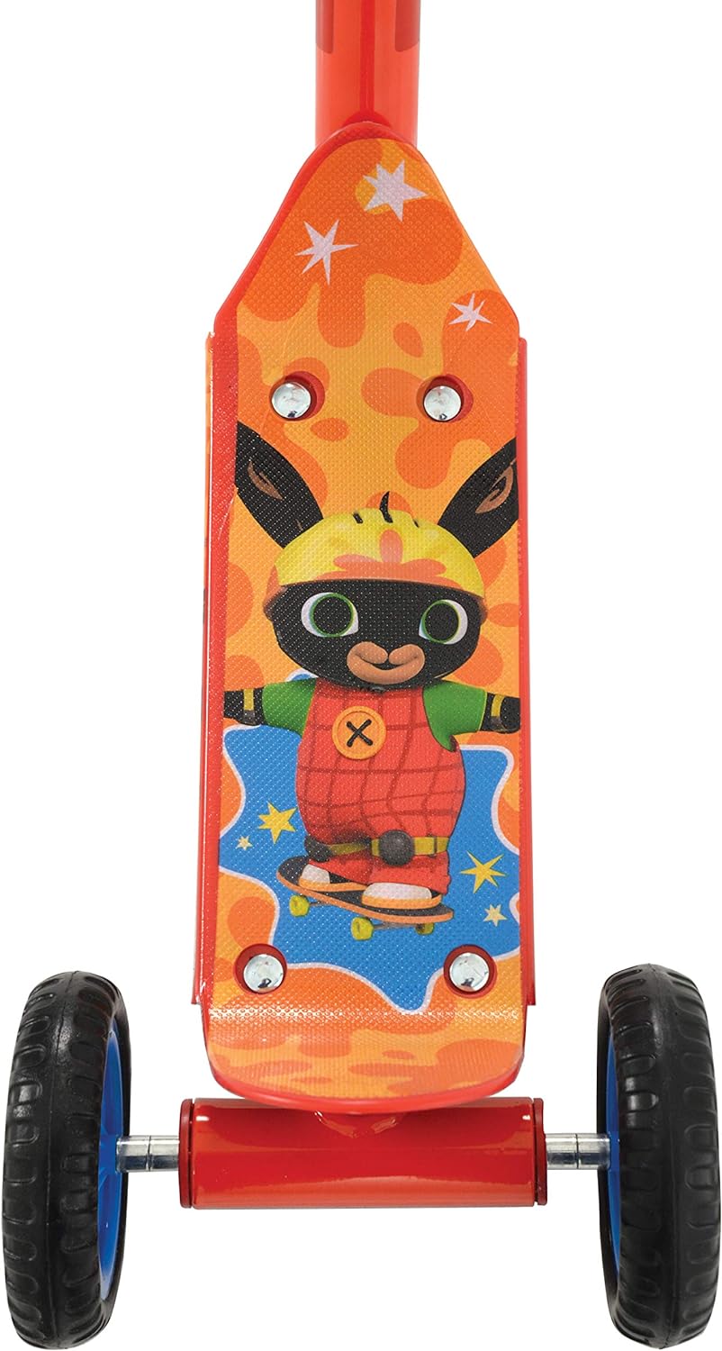 Fantastico monopattino a tre ruote di Bing: una anteriore di 15 cm e due posteriori di 10 cm di diametro realizzate in PU con copertura in EVA e cuscinetti di precisione per dare velocità e fluiidità al movimento. Il manubrio è regolabile in altezza da 58 a 65 cm con due manicotti in gomma per una presa comoda e sicura. Telaio in acciaio resistente agli urti.