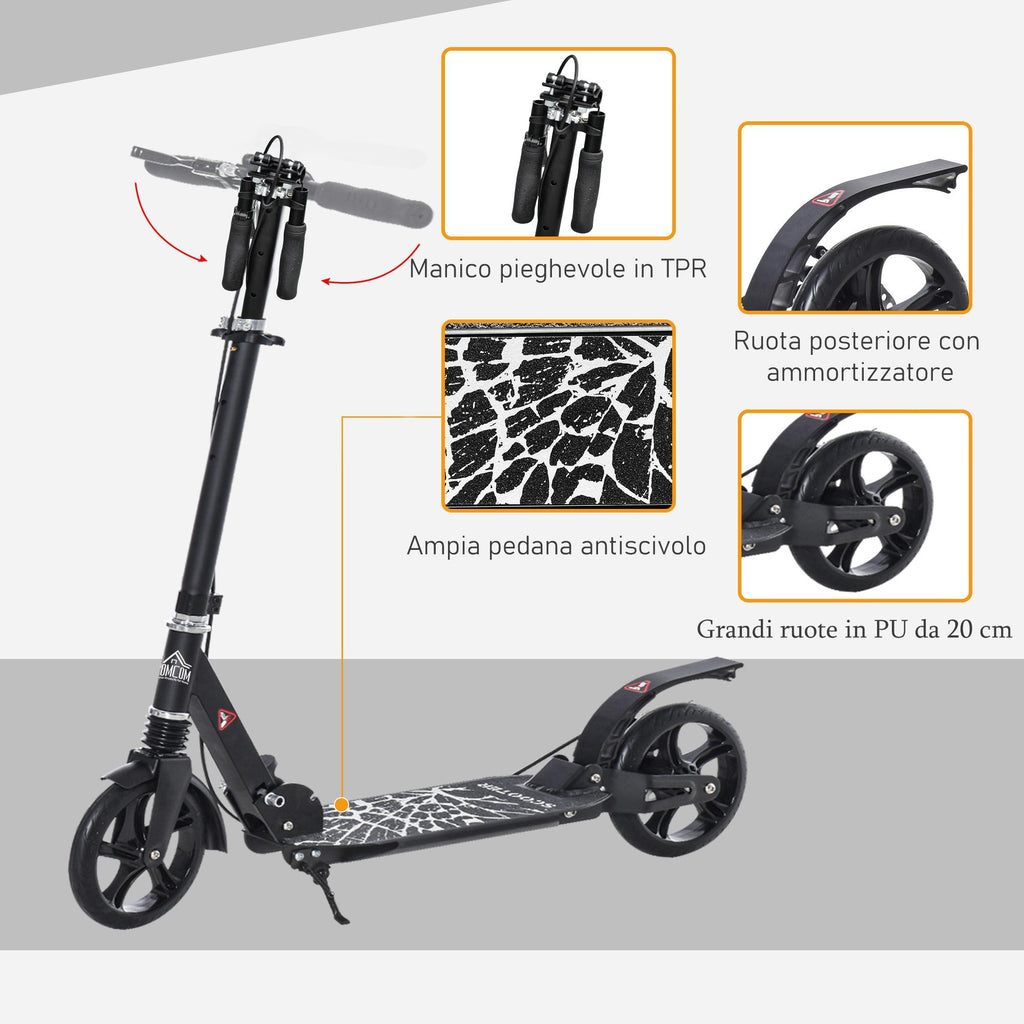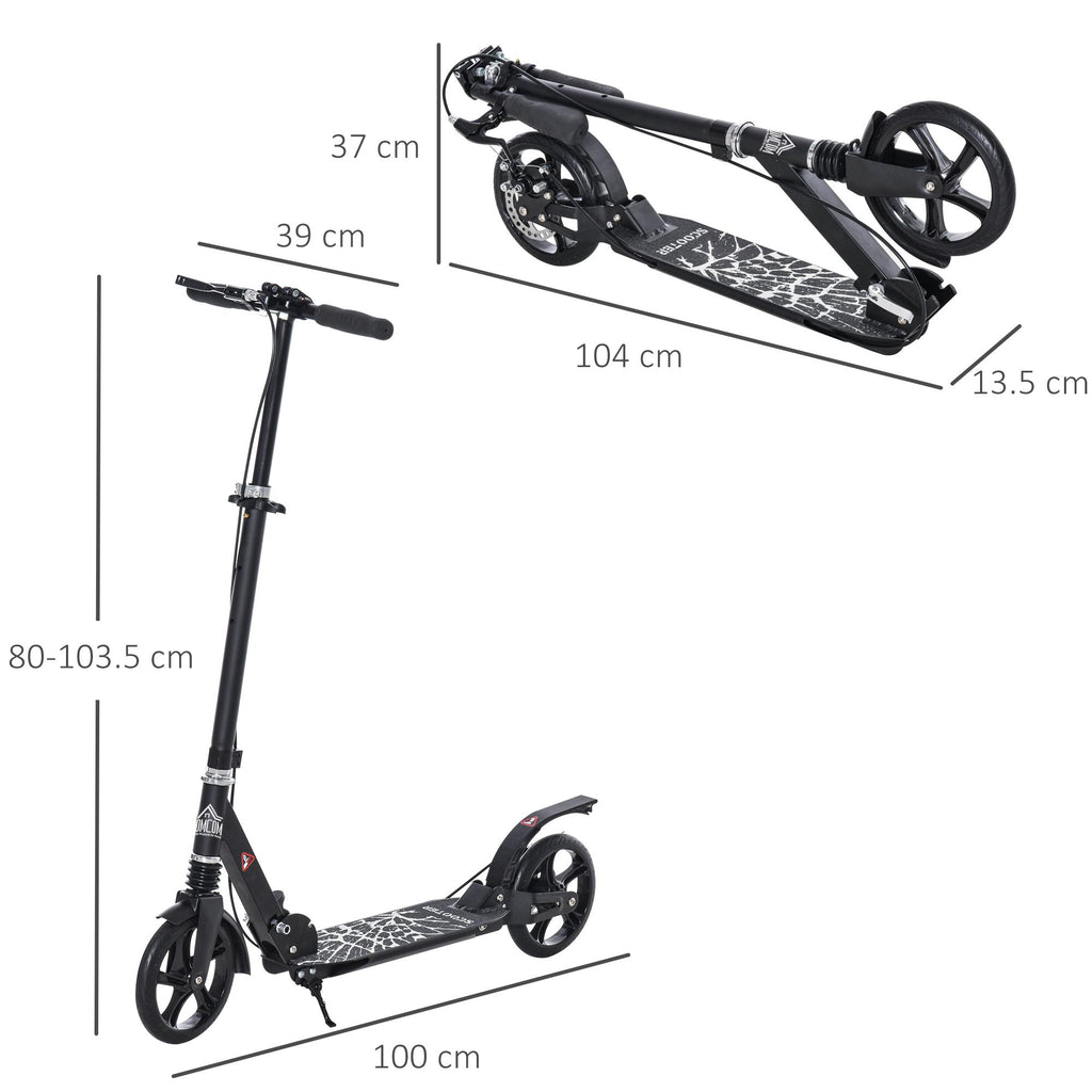 Monopattino Pieghevole 100x39x80-103,5 cm con Freno a Disco in Alluminio Nero