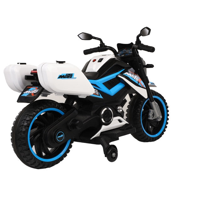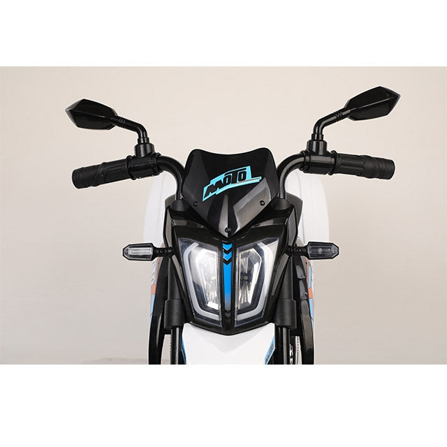 Fantastica Moto Elettrica stile da Cross per Bambini con Luci e Suoni. Dal design accattivante e dalle dimensioni ottimali, il tuo bambino proverà l'emozione di guidare una moto come quella dei grandi!