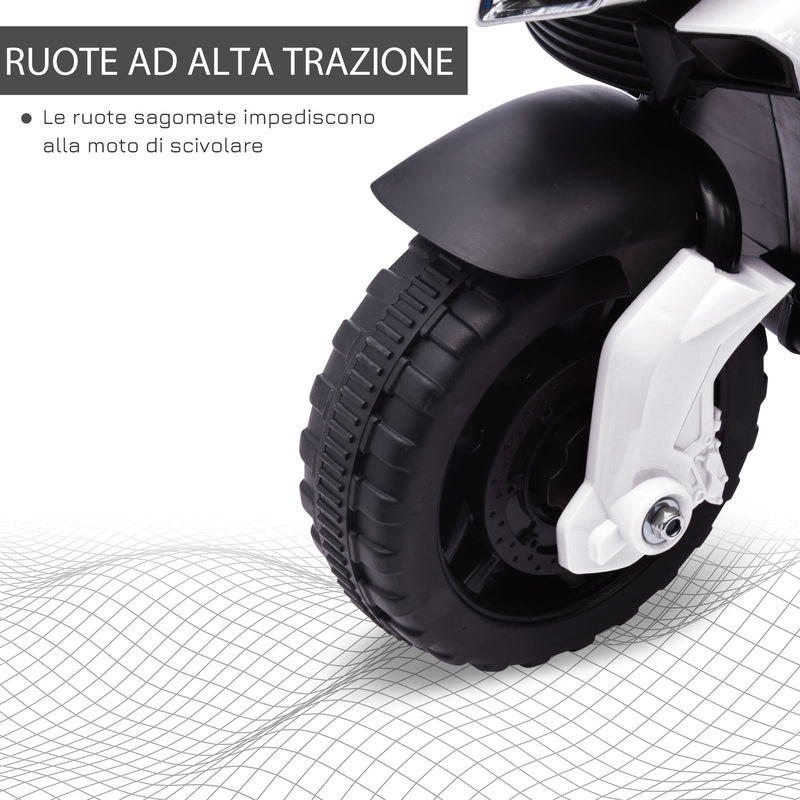 Moto Elettrica per Bambini 6V con Fari e Clacson Bianco
