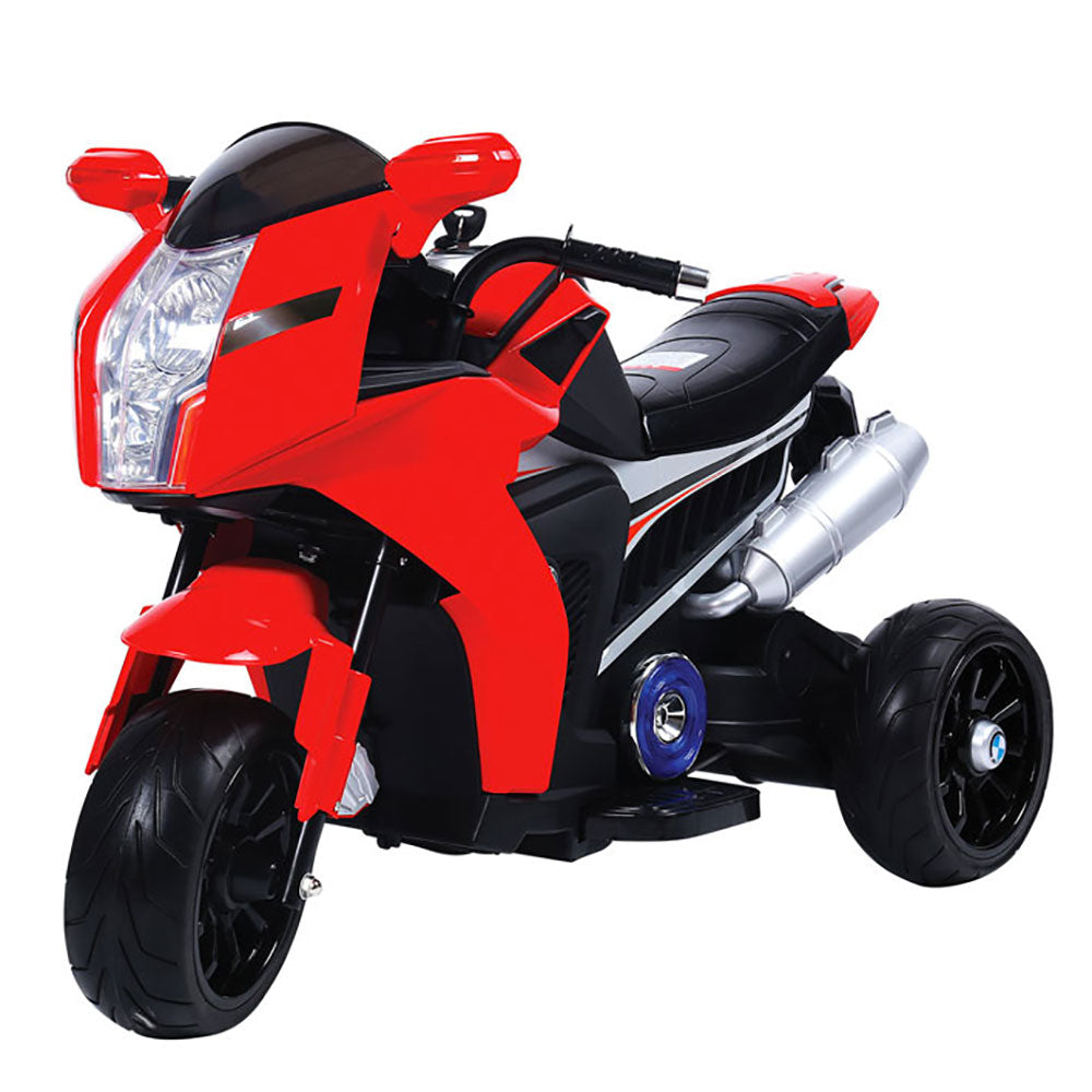 La moto motocicletta elettrica 6V per bambini è la mini moto ideale per i piccoli piloti poichè ogni dettaglio della motocicletta è stato studiato per garantire la massima sicurezza dei bambini senza rinunciare al divertimento. L'acceleratore a pedale permette di raggiungere una velocità massima di 5 km/h, la fermata è automatica nel momento in cui il bimbo toglie il piede dal pedale di marcia. Solida e resistente, con perfetta tenuta su tutti i terreni. La batteria da 6 volt assicura circa 1 ora di utilizzo, e una volta scarica, basta ricaricarla con il caricabatterie in dotazione, senza bisogno di estrarla. Un veloce un pit stop e si riparte! Insieme al sonoro si attivano anche delle luci per offrire un'esperienza sempre più realistica. Si può selezionare la marcia in avanti, folle o indietro. In caso di marcia in avanti o indietro si accenderanno le relative luci. Le ruote sono in plastica e la marmitta fa fumo reale con vapore acqueo. I vostri piccoli saranno affascinati da questa esperienza di gioco unica.