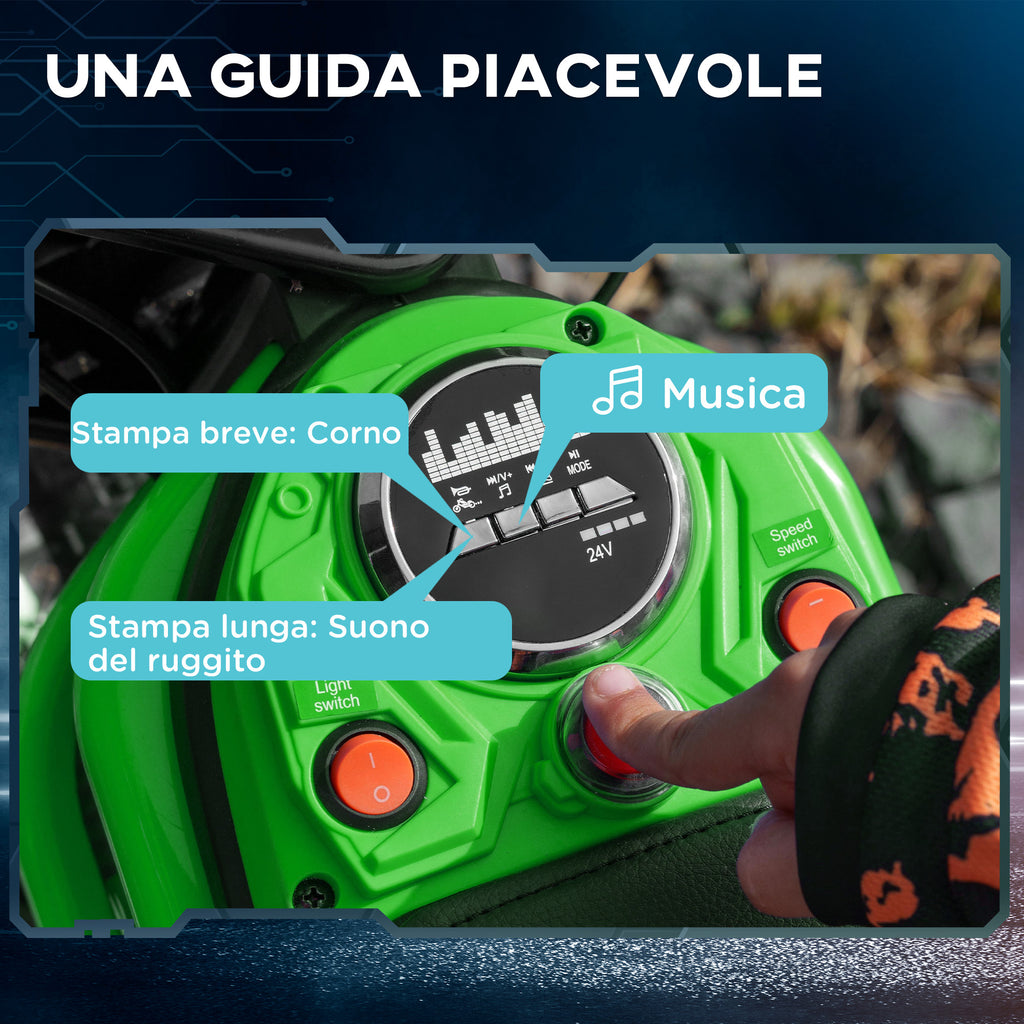 Moto Elettrica per Bambini con Acceleratore Manuale 2 Velocità 8-16km/h Verde