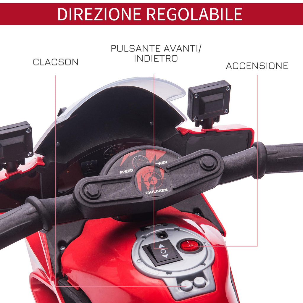 - SICURA: L'ampia seduta sagomata e le 2 grandi ruote con rotelline ausiliarie offrono comodità e stabilità, mentre il manubrio li fa sentire sicuri mentre si muovono. La moto elettrica per bimbi regala tanto divertimento in completa sicurezza