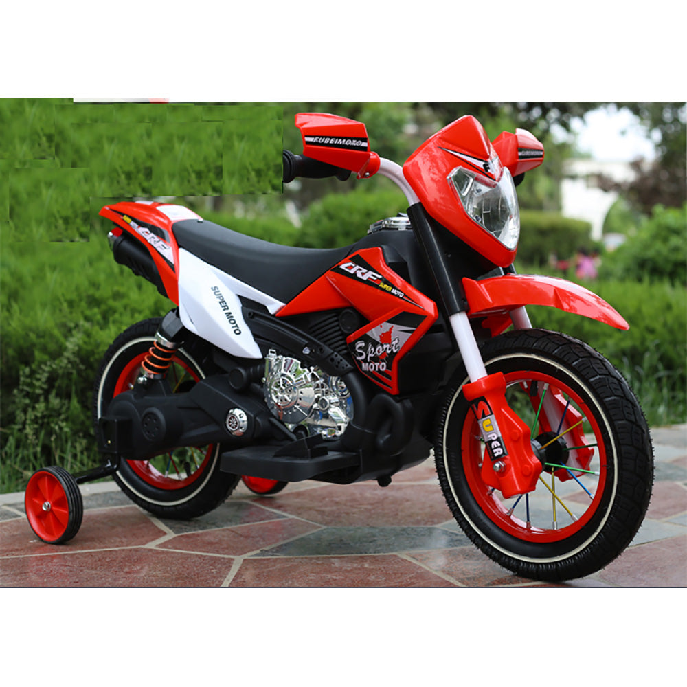 La moto elettrica Motocross 6V per bambini è una riproduzione delle supermoto da cross. Viene equipaggiata di rotelle di supporto per una stabilità massima. I vostri figli saranno contenti in sella a questa moto cross elettrica di potersi muovere proprio come fanno i grandi a bordo delle 2 ruote aiutati anche dalla riproduzione realistica di luci e suoni. E' l'ideale per regalare momenti di gioco indimenticabili.
