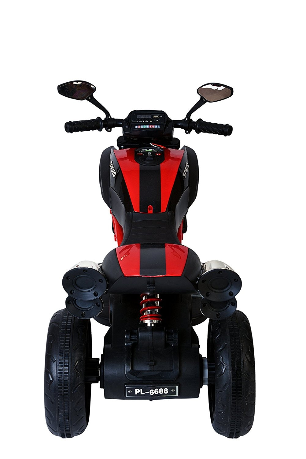 Moto Elettrica per Bambini Speed, ideale per rendere i propri piccoli dei veri e propri piloti in tutta sicurezza. Le tre ruote di supporto garantiscono una stabilità massima. Sella confortevole e ruote in plastica con battistrada su anello centrale. Questa moto da corsa elettrica da la possibilità di potersi muovere proprio come i grandi a bordo delle 2 ruote aiutati anche dalla riproduzione realistica di luci e suoni. La mini moto Speed è fatta per avere una sensazione realistica alla guida, con l'acceleratore a pedale i vostri bambini si sentiranno proprio in sella ad una moto vera. E' l'ideale per regalare momenti di gioco indimenticabili.