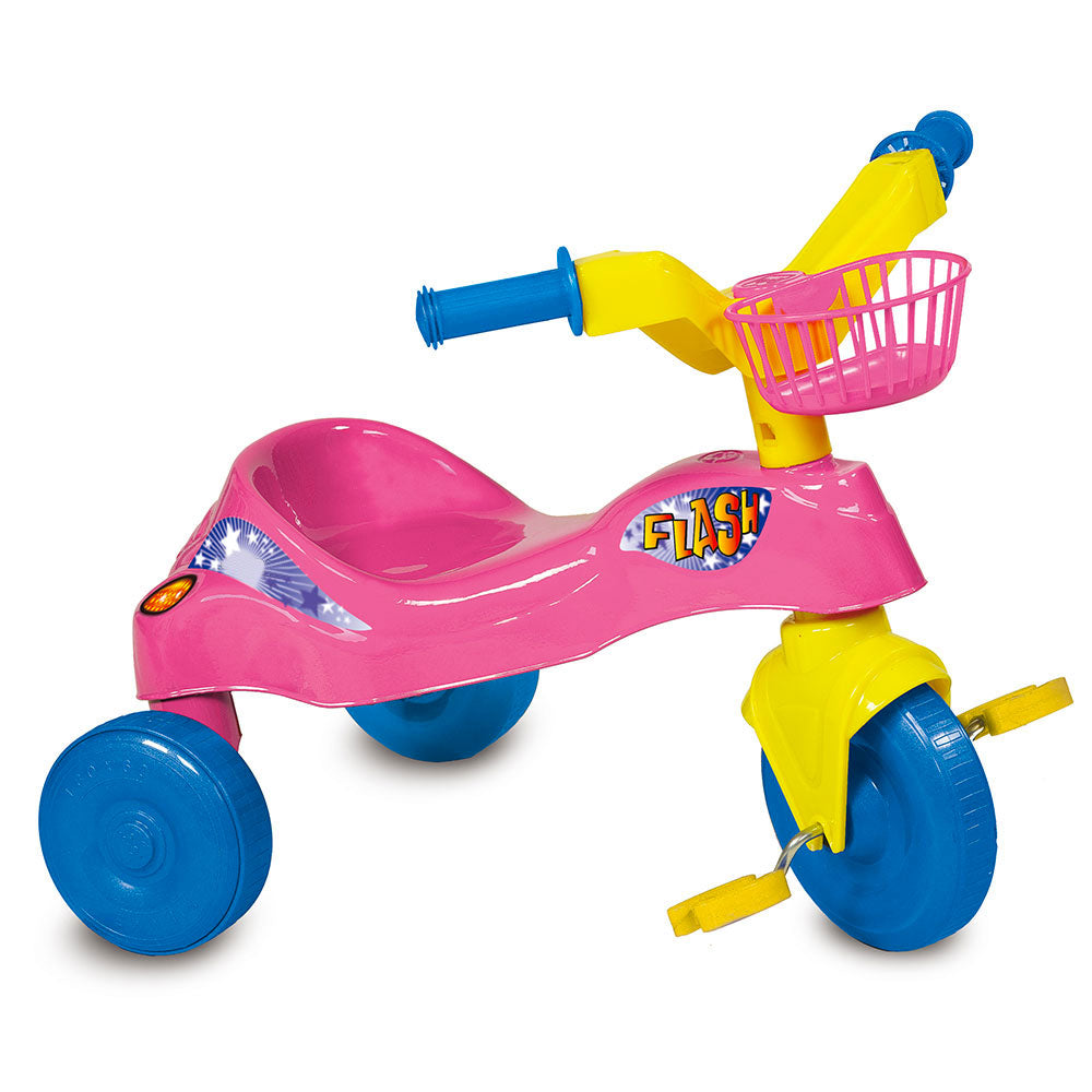 Triciclo Flash Rosa con Pedali e Cestino Porta oggetti per Bambini
