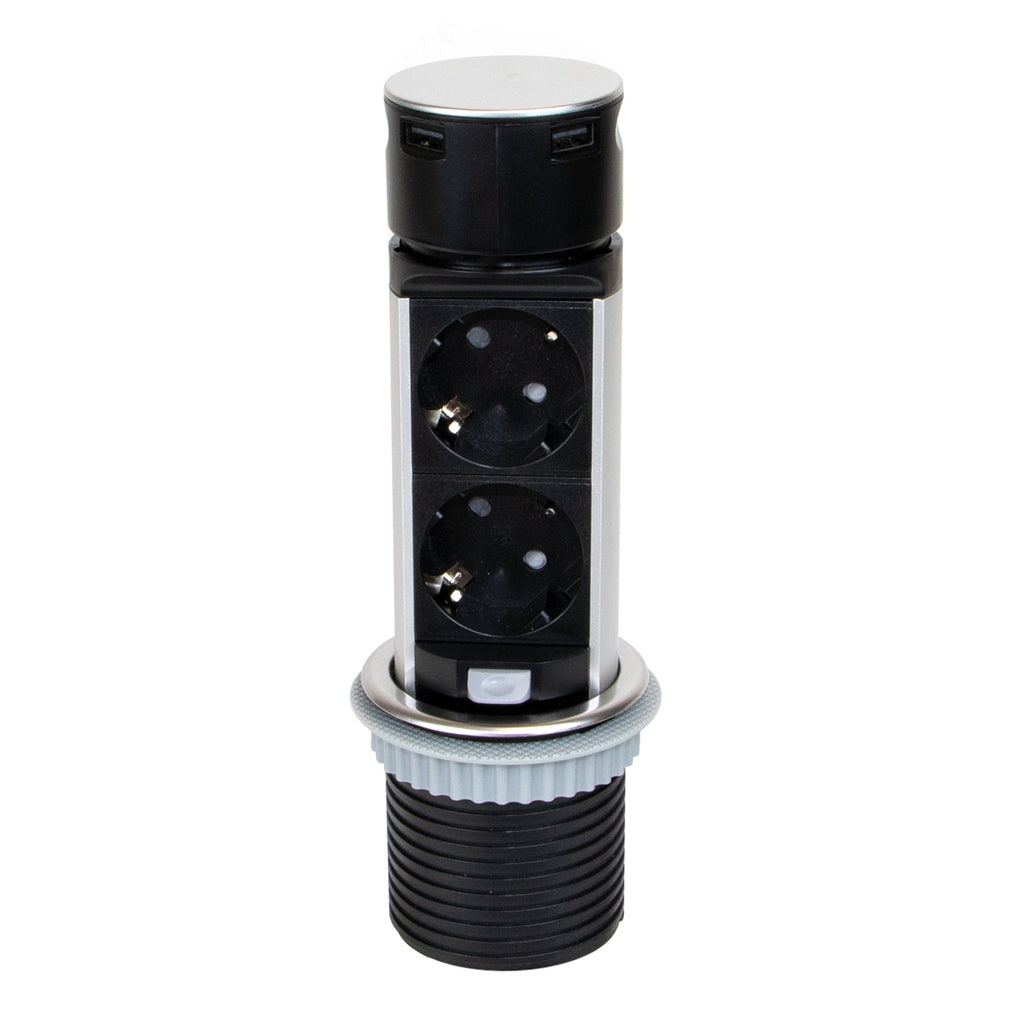 Multipresa a Torretta 2 Prese 2 USB a Scomparsa da Scrivania in Acciaio e Plastica Emuca